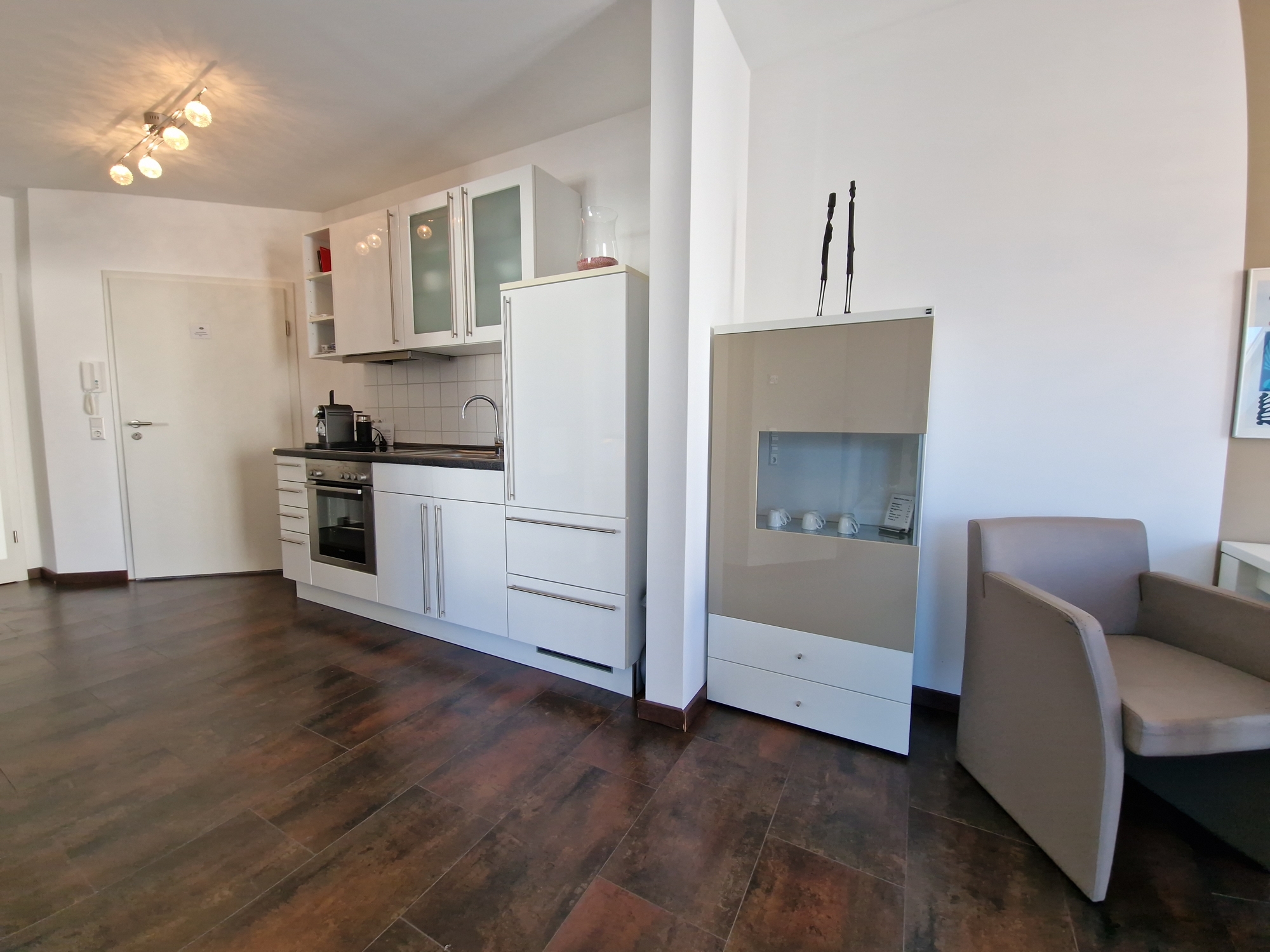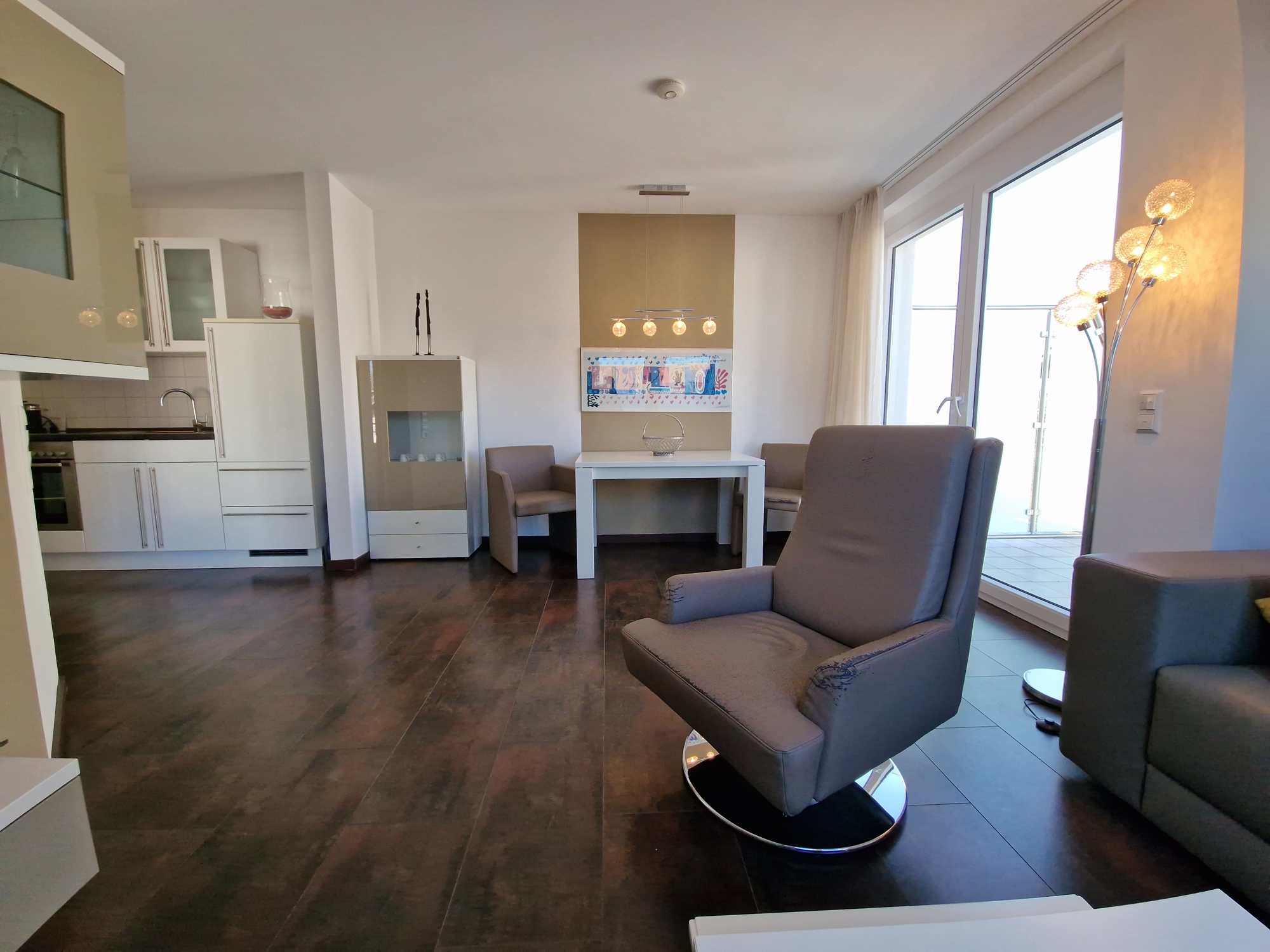 Ausstattung: Großzügiger, moderner Grundriss Zwei Balkone mit herrlichem Ausblick Voll ausgestattete Einbauküche Internet- & Telefonanschluss – bereits eingerichtet und betriebsbereit für Gäste Flat-TV Komplett möbliert: stilvolle Einrichtung für Schlafzimmer, Wohnzimmer, Küche und Bad Badezimmer mit bodengleicher Dusche Großer Keller als zusätzlicher Stauraum Lift für bequemen Zugang Hotel-Rezeption zur Unterstützung der Gäste