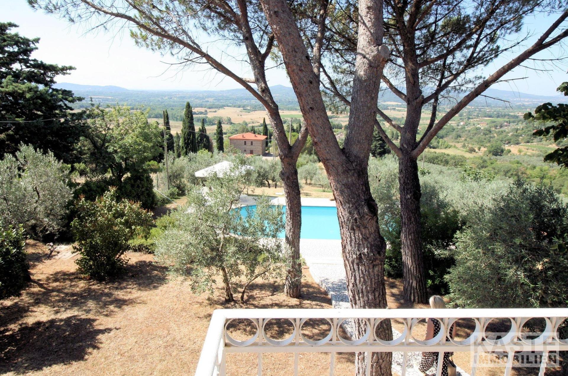 Die Villa liegt auf 300 ü.d.M. am Hang des Naturparks Pratomagno. Sie ist umgeben von 3300 qm Garten, der komplett eingezäunt ist. Sie können sogar auf Pfaden direkt vom Grundstück aus im Wald spazieren gehen. Sowohl vom Haus als auch vom Garten und dem Pool aus haben Sie einen unglaublichen Blick auf Arezzo, das ValdiChiana, den Monte Amiata, den Monte Cetone und das Valdarno. Sie können das Grundstück mit dem Bus direkt von Arezzo aus erreichen. Die örtliche Regierung hat die Erlaubnis erteilt, 200 qm mehr zu bauen, sowohl neben dem Haus als auch in der Nähe davon. Das gesamte Grundstück ist in perfektem Zustand.