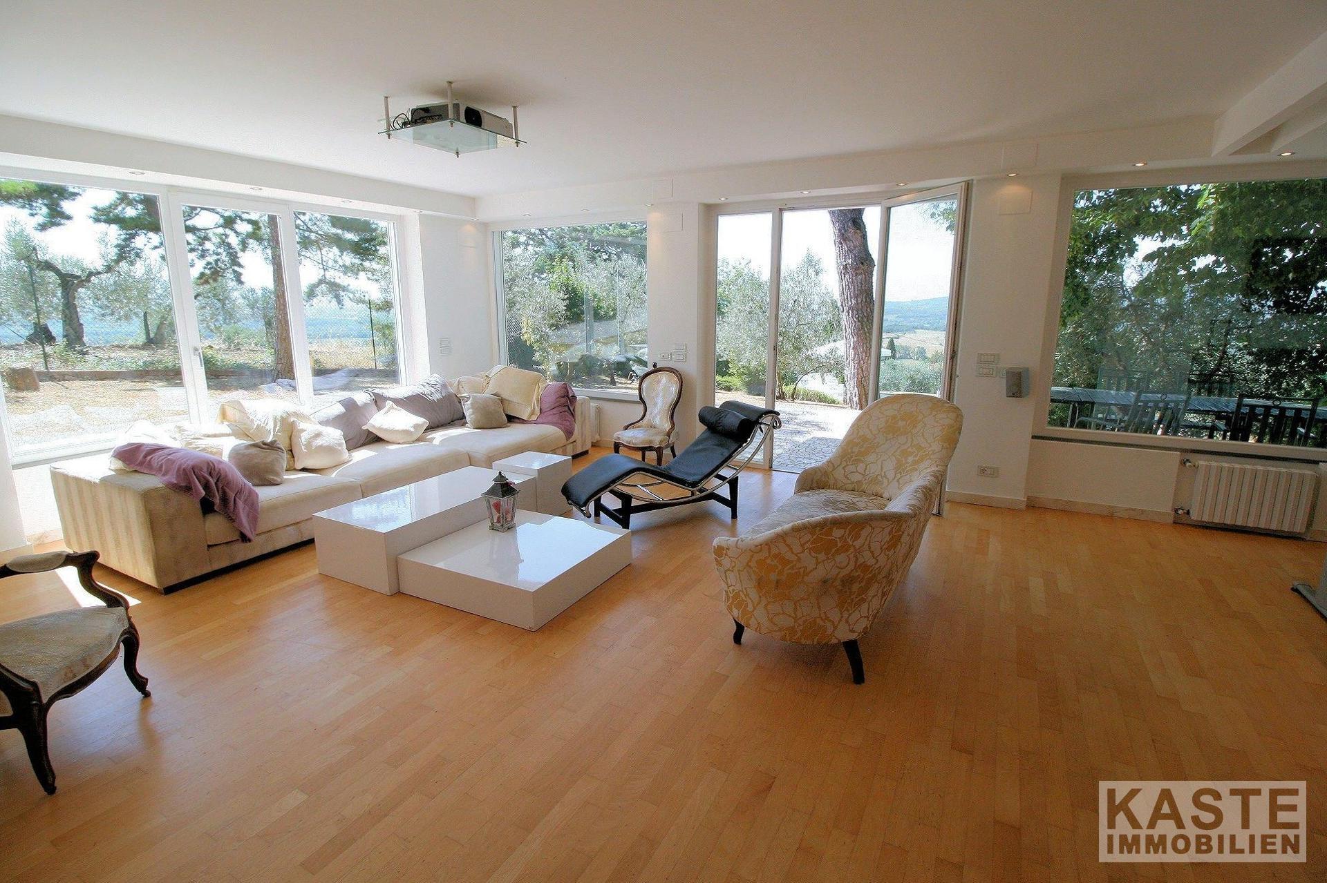 Bei diesem Objekt handelt es sich um eine schöne, helle Villa mit ca. 230 qm in einer bezaubernden Lage, mit atemberaubendem Blick auf die Hügel von Capolona. Umgeben ist das Haus von Olivenbäumen und einem großen Pool. Mit dem Hintergedanken die Natur zu bewahren, wurde diese Villa restauriert.