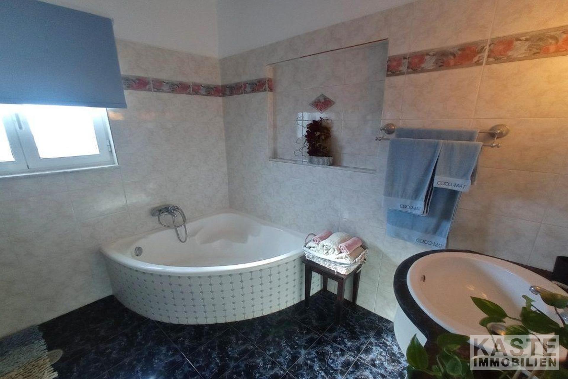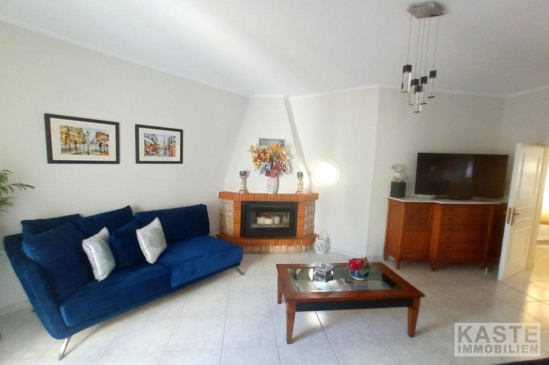 Draußen gibt es einen großen Pool mit einer gefliesten Terrasse mit Sonnenliegen, zwei schattige Sitzecken (eine davon mit Grill), einen Holzofen und einen Schuppen/Abstellraum hinter dem Haus mit einem eigenen kleinen gefliesten Sitzbereich.
