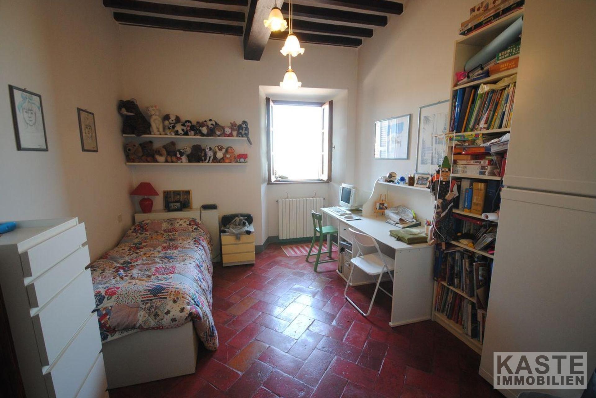 Das Erdgeschoss verfügt über eine Eingangshalle, Esszimmer mit schönem Marmorkamin, Küche, großes Wohnzimmer, 2 Schlafzimmer und 2 Bäder. Die gesamte untere Etage hat schöne antike Terrakottaböden. In der zweiten Etage gibt es ein Wohnzimmer, ein Badezimmer, ein Schlafzimmer und ein Esszimmer mit Kamin und eine voll ausgestattete Küche mit einem einzigartigen 180-Grad-Blick auf den Glockenturm des Doms, das Tal und die Berge des Cortona-Hügels.