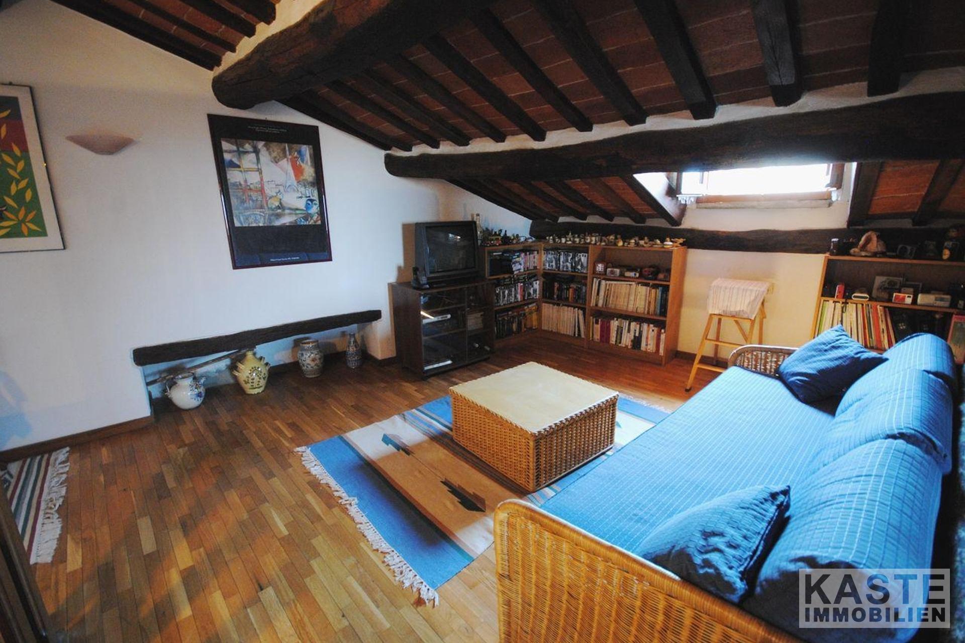 Diese schöne Wohnung befindet sich im historischen Zentrum von Cortona mit atemberaubendem Blick auf den Glockenturm des Doms und das Tal. Die Wohnung befindet sich im dritten Stock eines schönen historischen Gebäudes, das eine Gesamtfläche von 220 qm hat und in zwei Etagen aufgeteilt ist.