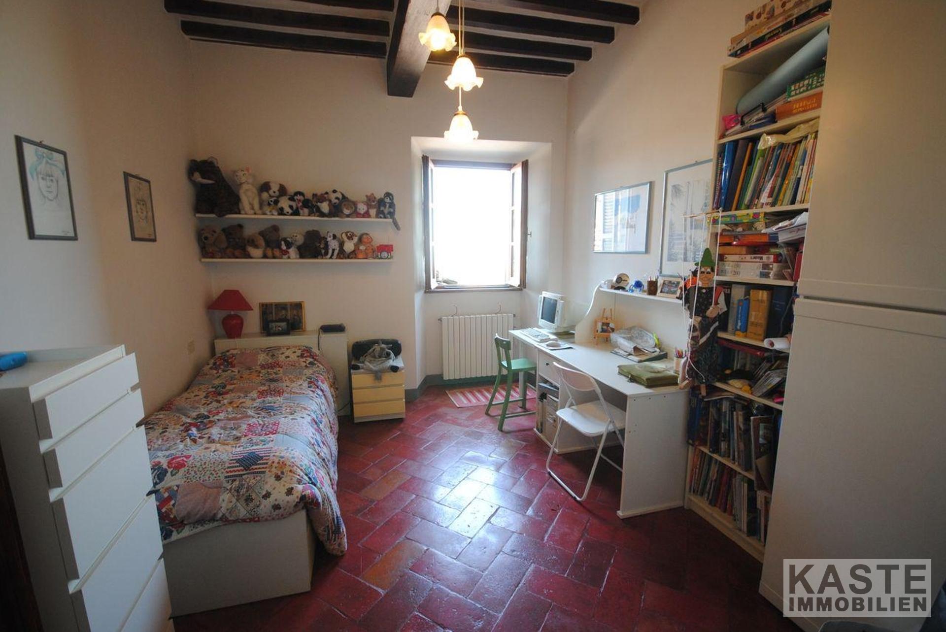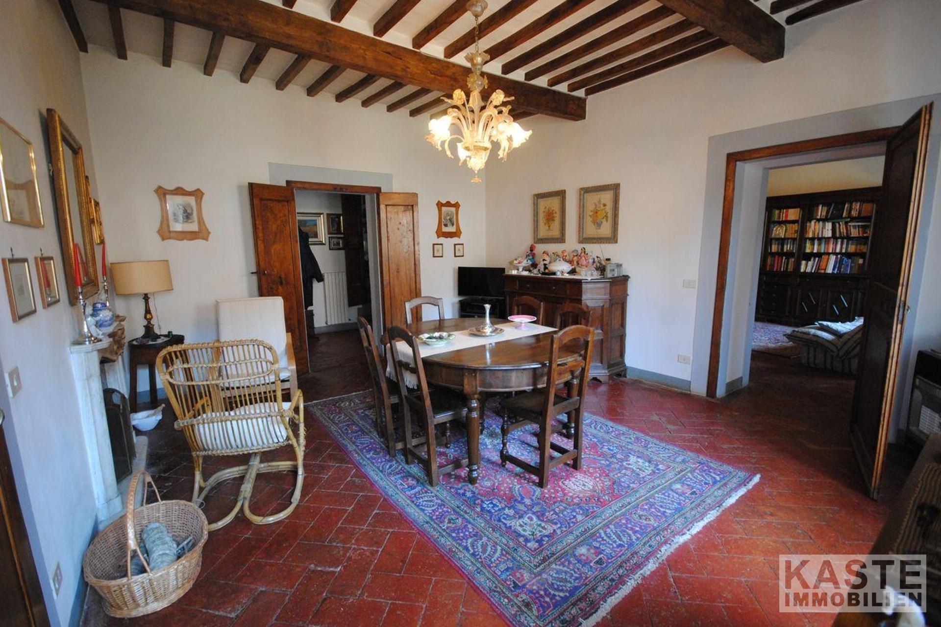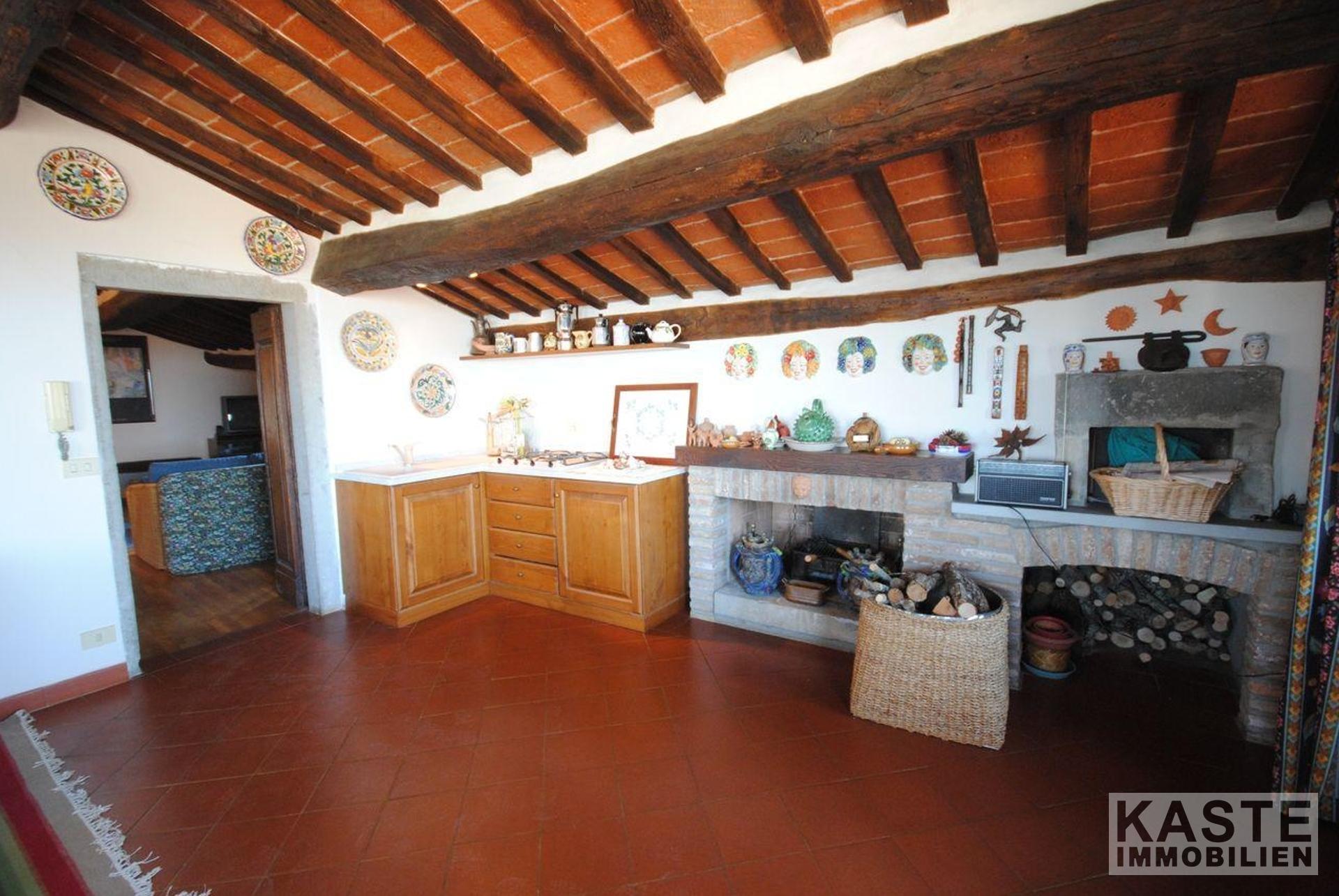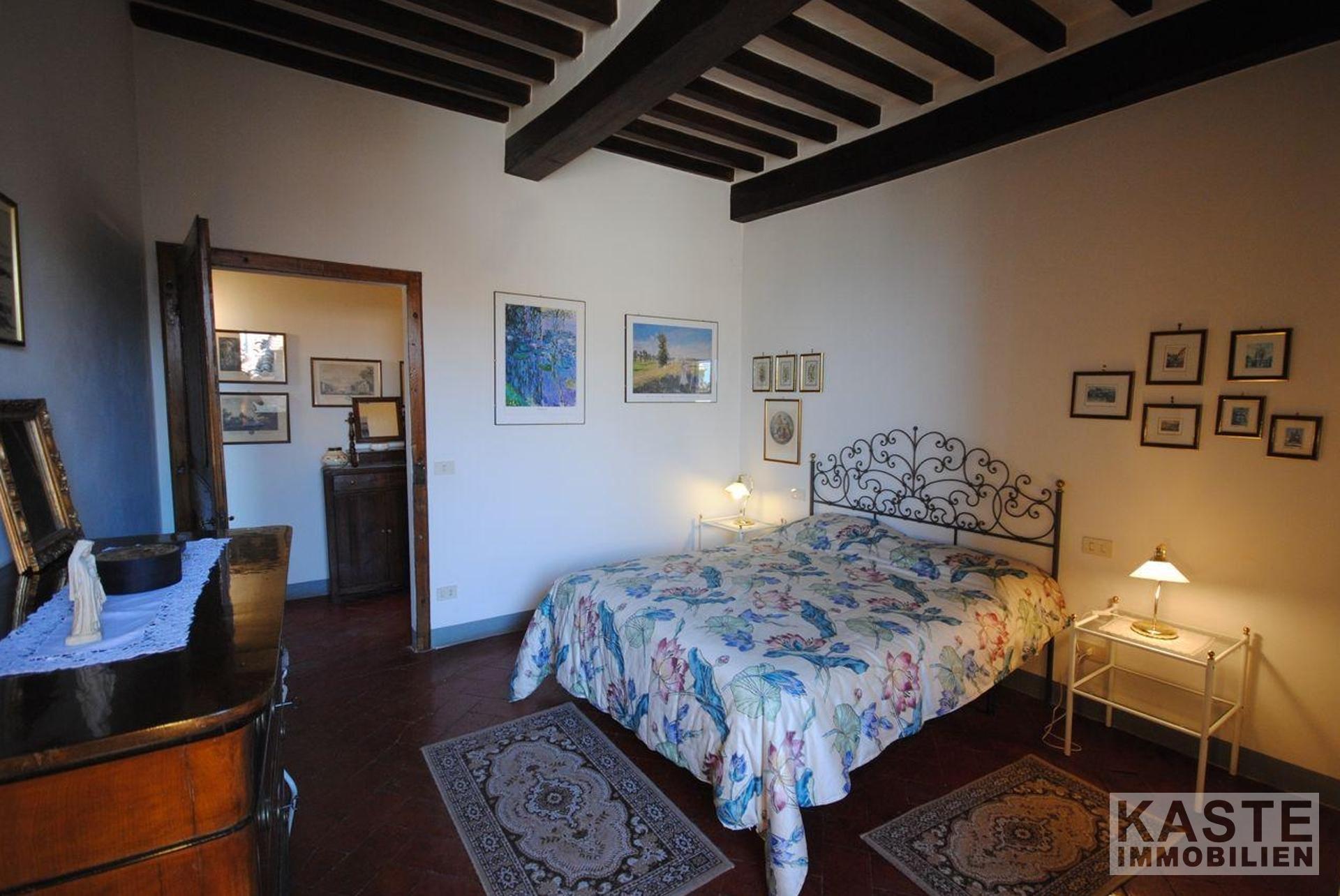 Das Erdgeschoss verfügt über eine Eingangshalle, Esszimmer mit schönem Marmorkamin, Küche, großes Wohnzimmer, 2 Schlafzimmer und 2 Bäder. Die gesamte untere Etage hat schöne antike Terrakottaböden. In der zweiten Etage gibt es ein Wohnzimmer, ein Badezimmer, ein Schlafzimmer und ein Esszimmer mit Kamin und eine voll ausgestattete Küche mit einem einzigartigen 180-Grad-Blick auf den Glockenturm des Doms, das Tal und die Berge des Cortona-Hügels.
