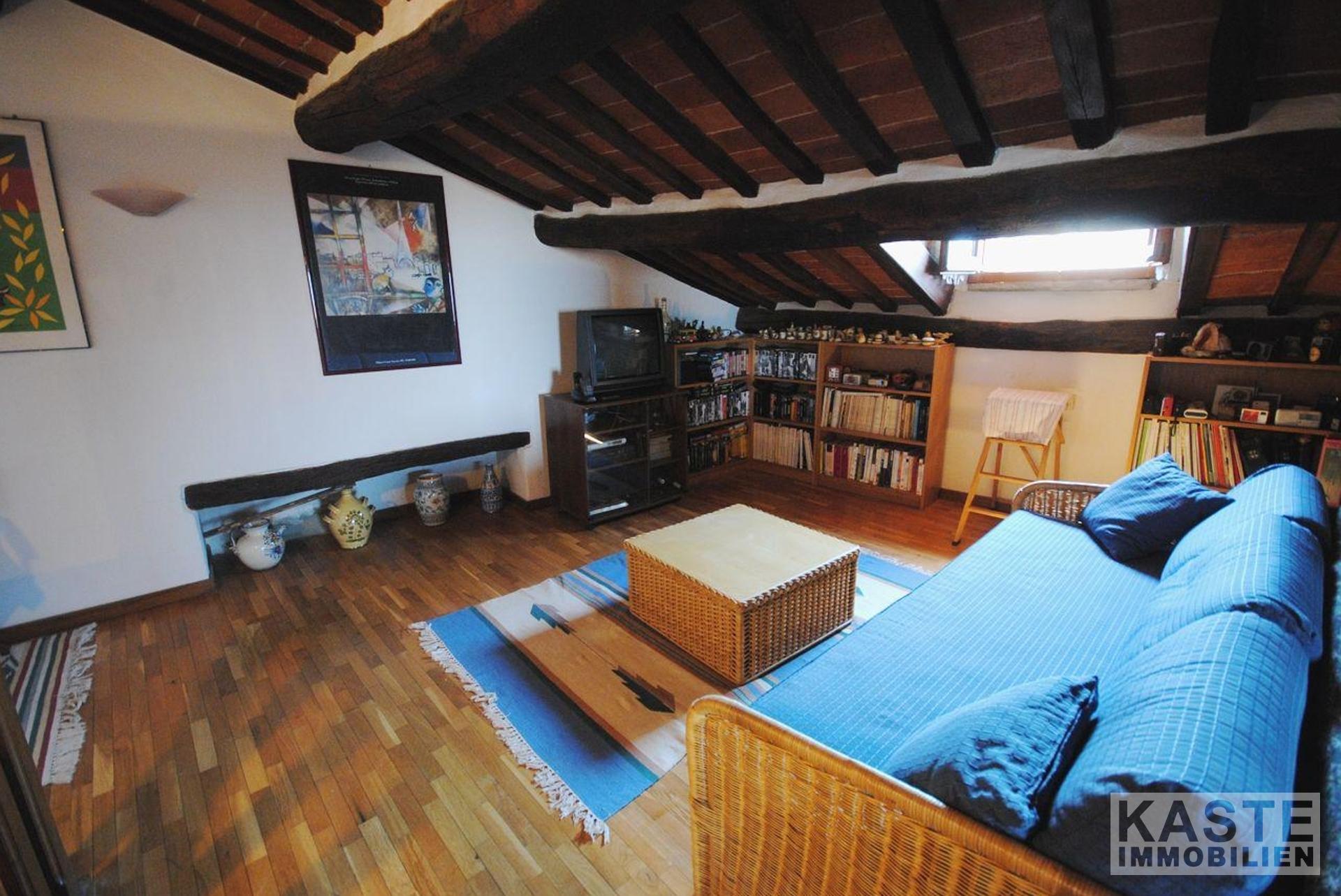 Diese schöne Wohnung befindet sich im historischen Zentrum von Cortona mit atemberaubendem Blick auf den Glockenturm des Doms und das Tal. Die Wohnung befindet sich im dritten Stock eines schönen historischen Gebäudes, das eine Gesamtfläche von 220 qm hat und in zwei Etagen aufgeteilt ist.