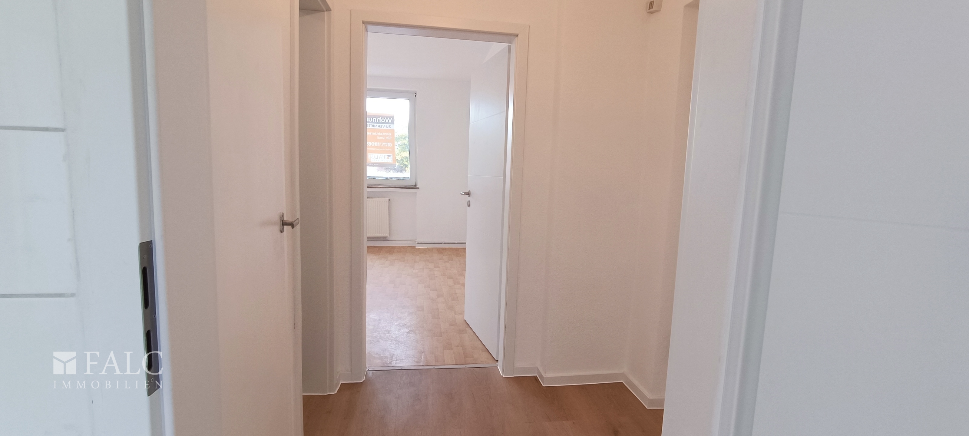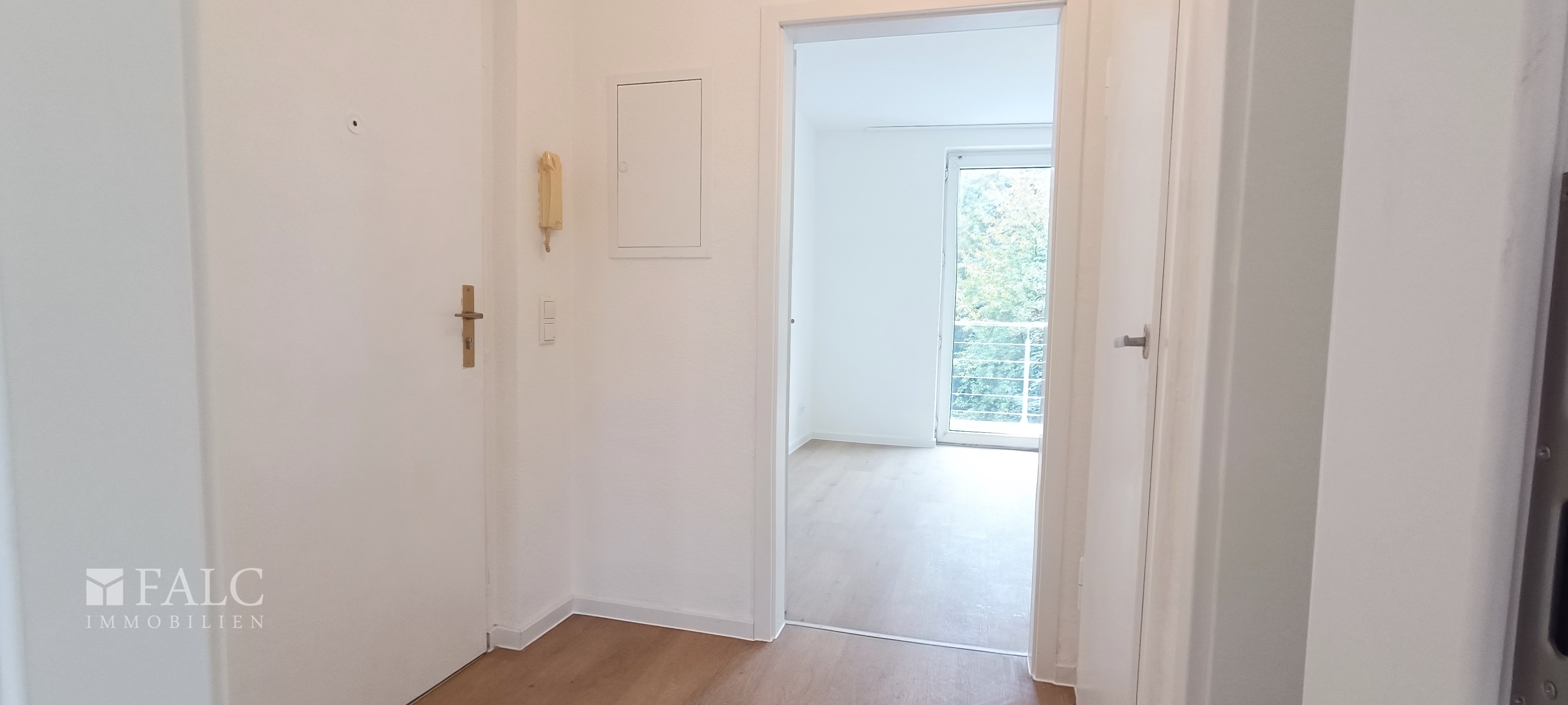 Betreten Sie diese charmante modernisierte Wohnung, die 1958 erbaut wurde und eine Wohnfläche von 58,5 m² bietet. Der Eingangsbereich führt Sie direkt in den kleinen Flur, der mit einem Einbauschrank ausgestattet ist. Ihre Putzutensilien finden hier problemlos Platz, sodass Ihre Wohnung immer aufgeräumt ist.