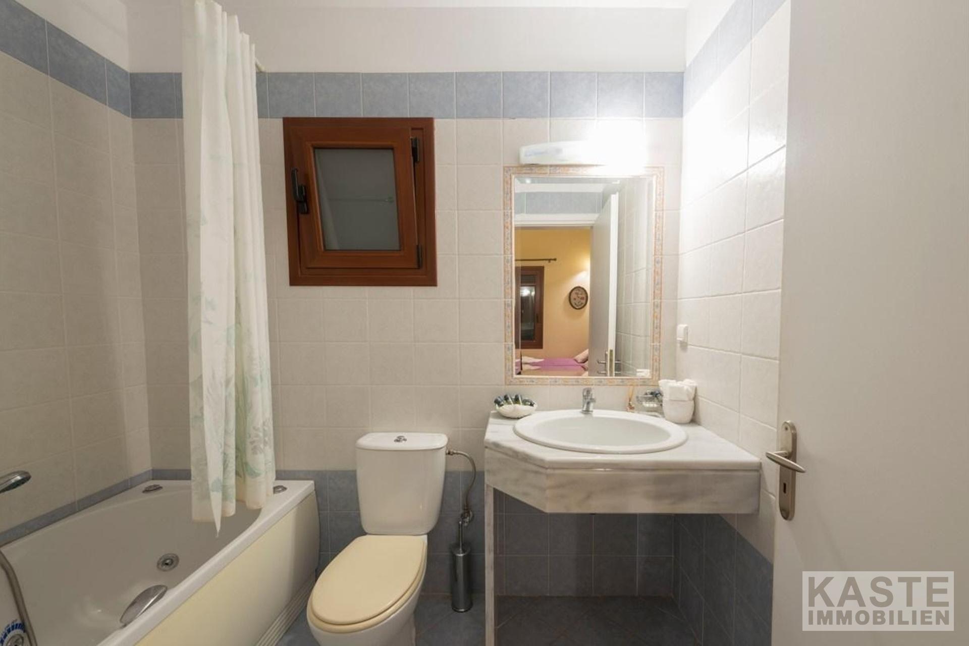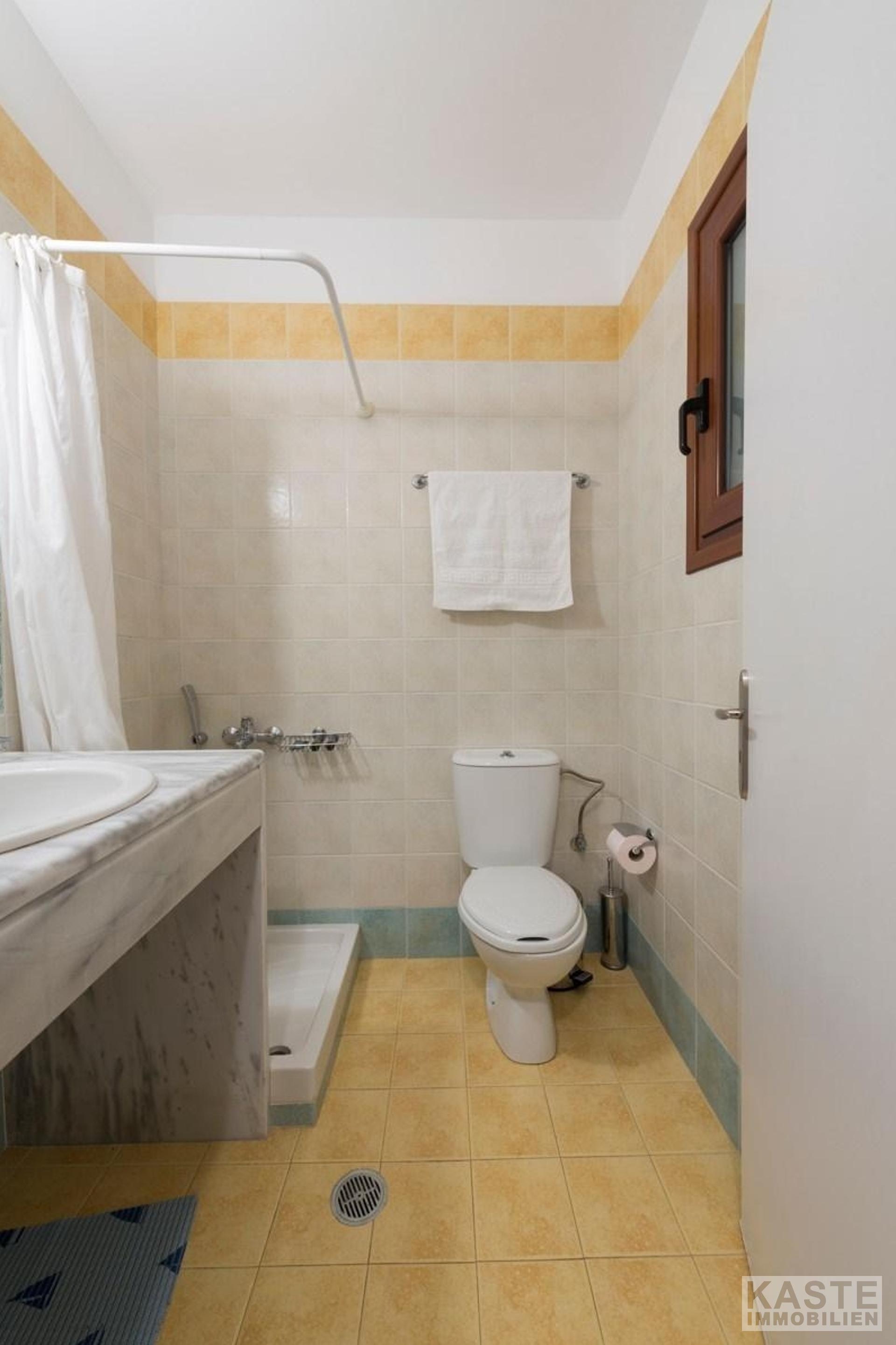 Durch den Haupteingang gelangen Sie in einen geräumigen Ess- und Wohnbereich mit einem fantastischen Kamin und einer voll ausgestatteten Einbauküche mit allen Haushaltsgeräten, einschließlich einer Spülmaschine. Außerdem gibt es im Erdgeschoss eine Toilette für Gäste. Auf der ersten Etage befinden sich zwei Schlafzimmer mit Balkon zum Meer und ein Badezimmer, das sich die beiden Schlafzimmer teilen. Auf der zweiten Etage gibt es ein weiteres Schlafzimmer und ein Badezimmer mit Dusche. Das Schlafzimmer hat auch einen Balkon mit atemberaubendem Panoramablick.