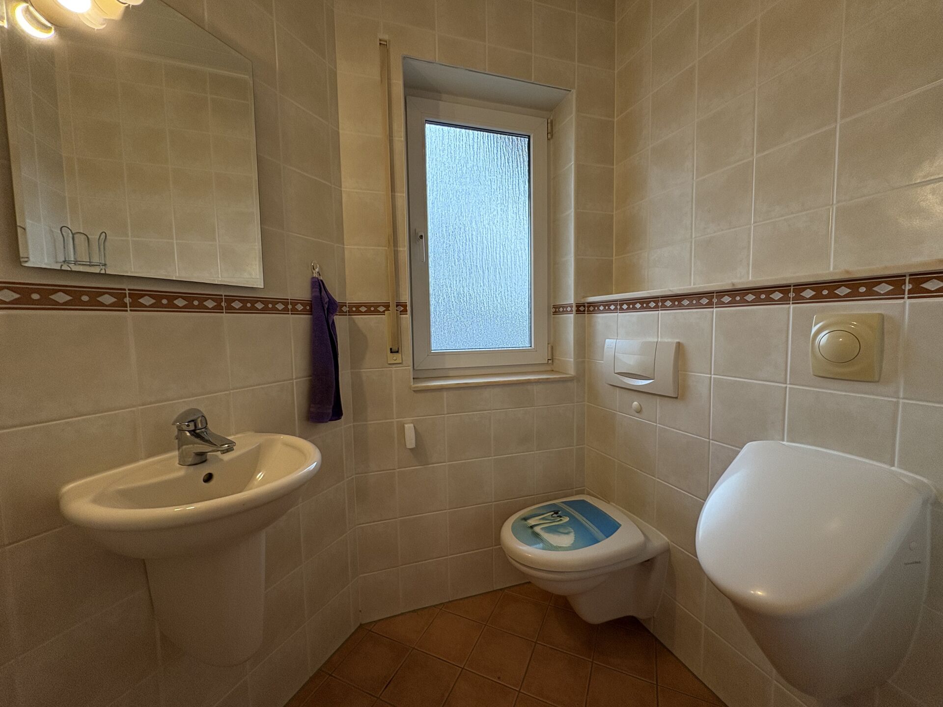Dieses im Jahr 2000 errichtete Einfamilienhaus bietet auf insgesamt sechs Zimmern viel Platz zur eigenen Entfaltung. Das großzügige Wohn- und Esszimmer mit Kaminofen bildet den zentralen Treffpunkt des Hauses und lädt zu gemeinsamen Stunden ein. Besonders praktisch ist der direkte Zugang von der Garage ins Haus, der den Alltag erleichtert. Im Erdgeschoss befindet sich das Schlafzimmer mit angrenzender Ankleide, die zusätzlichen Stauraum schafft und für Ordnung sorgt. Das große weiße Badezimmer rundet das Raumangebot ab. Das Untergeschoss verfügt über einen Partykeller mit Kaminofen, ein Gästezimmer, eine Küche sowie ein WC – ideal für gesellige Abende oder Besuch. Wahlweise kann dieser Bereich als separater Wohnbereich genutzt werden. Die überdachte Terrasse erweitert den Wohnbereich nach draußen und ermöglicht entspannte Stunden bei jedem Wetter. Insgesamt überzeugt dieses Haus durch seine funktionale Aufteilung und die Kombination aus Wohnkomfort und praktischen Extras. Bemaßte Zeichnungen liegen vor und können bei Bedarf nachgereicht werden. Haben wir Sie neugierig gemacht? Dann rufen Sie uns an!