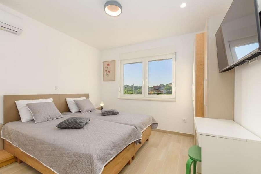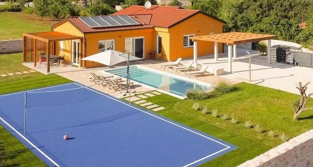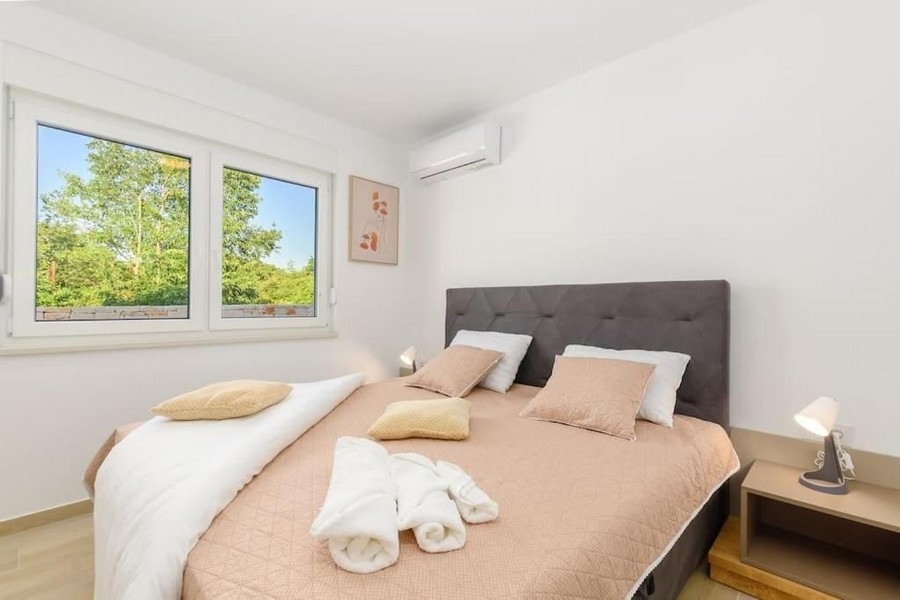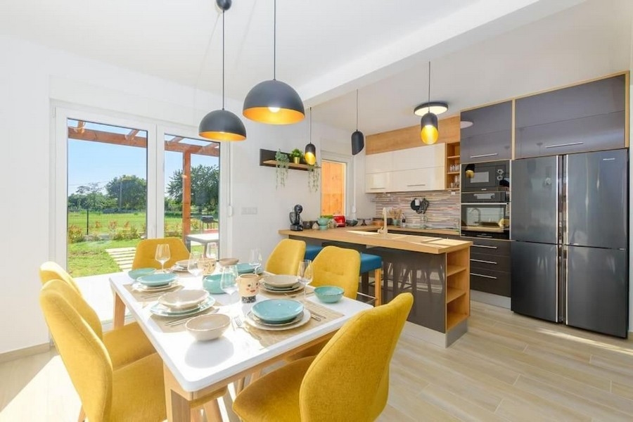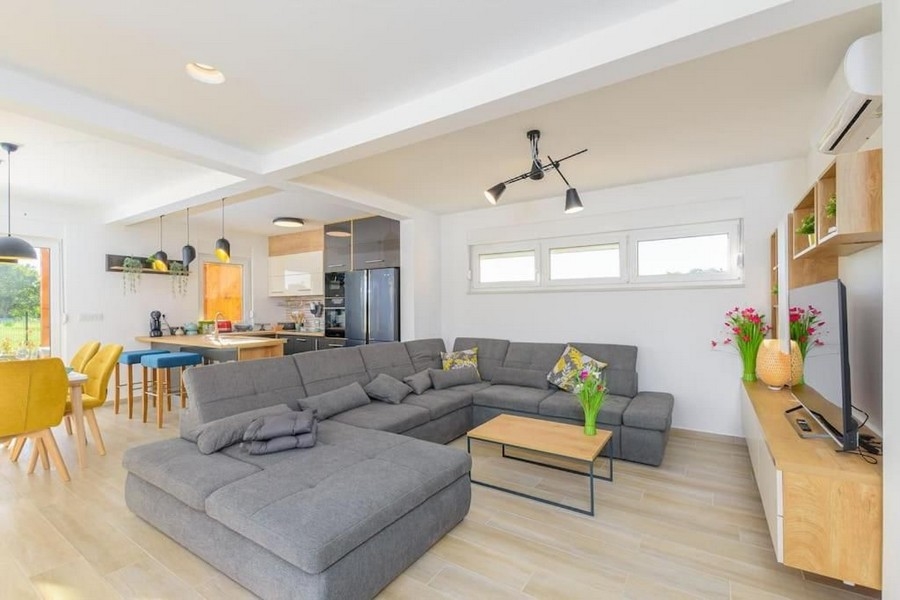 Dieses schöne Einfamilienhaus wurde 2022 gebaut und befindet sich in einer sehr ruhigen und schönen Lage in Istrien. Das Haus ist ca. 20.000 Meter von Rovinj und ca. 11.000 Meter vom Meer entfernt.