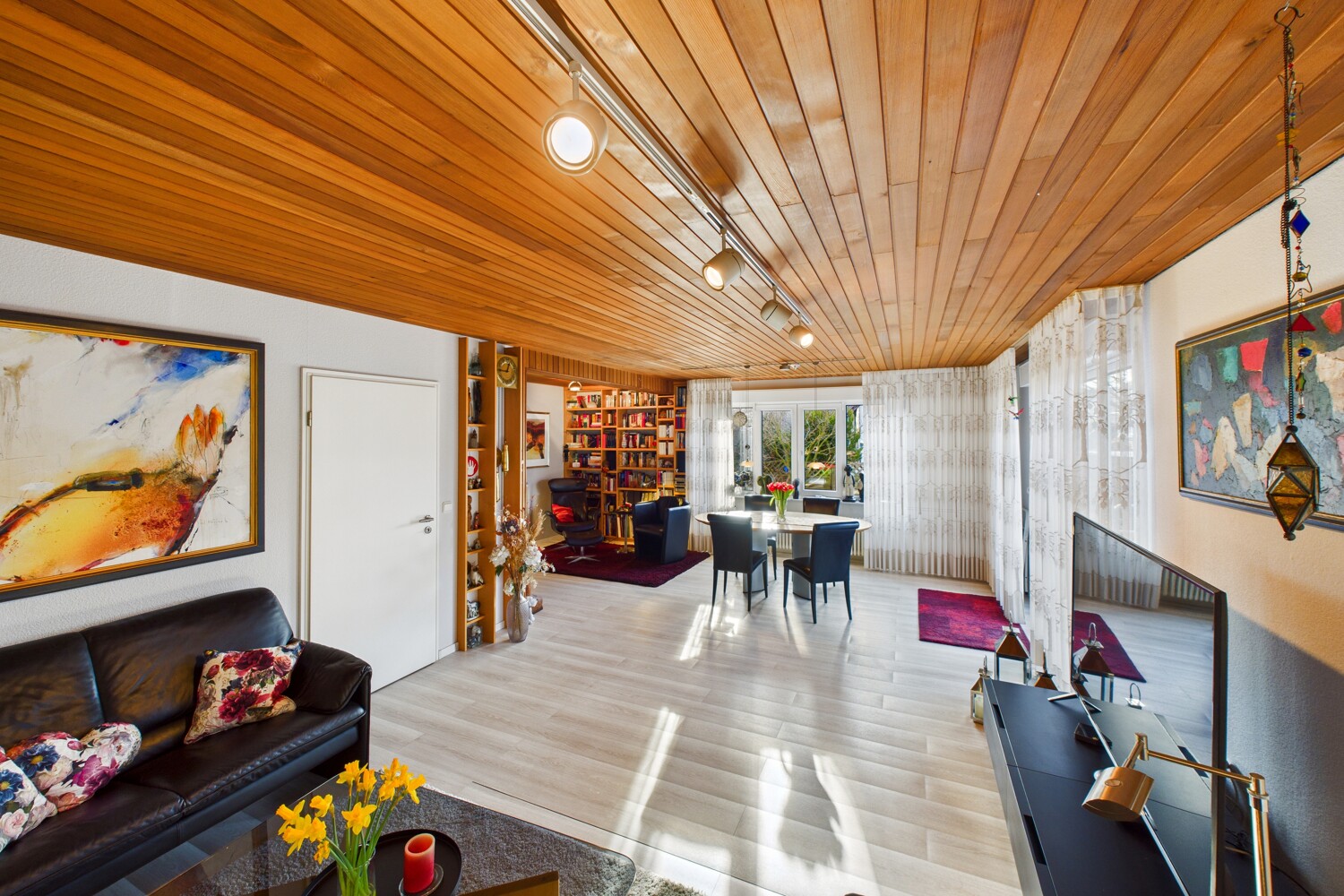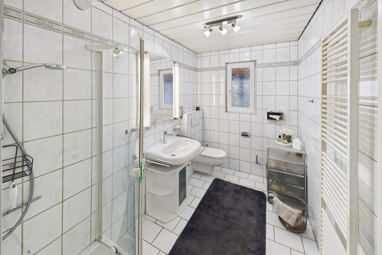 • Freistehendes Familienhaus • Hinterliegergrundstück in zweiter Reihe • Grundstück ca. 450 m² • Baujahr ca. 1964, Fertighaus • Wohnfläche ca. 152 m² • Nutzfläche Keller ca. 97 m² • 5 Zimmer, davon 4 Schlafzimmer • 2 Badezimmer • Hochwertiger, wendbarer Ofen • Zweifach verglaste Fenster • Rollläden überwiegend elektrisch • Keller mit ca. vier Räumen • Separater Heizungsraum • Westlich ausgerichtete Steinterrasse • Separate Holzterrasse • Gepflegter Garten • Teich mit Bachlauf • Brunnen mit Pumpe • Großer Schuppen mit Stromanschluss • PKW Stellplatz vor dem Haus • Umfassende Sanierung ca. 1998 bis 2000 • Erneuerung von Dach, Fassade, Fenstern und Heizung • Gedämmtes Dach im Zuge der Neueindeckung • Elektrik zweiadrig, nicht erneuert • Ölheizung mit ca. 4.000 Liter Tankvolumen