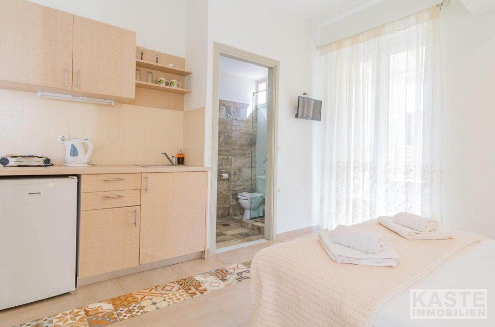 - Im Obergeschoss liegen drei Apartments mit einer Gesamtfläche von 76 m², von denen zwei einen atemberaubenden Meerblick bieten.