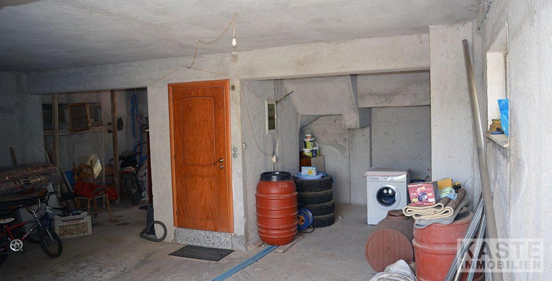 Das Erdgeschoss besteht aus einer Küche im Steindesign inkl. Geräten und einem Essbereich mit schöner Aussicht auf das Dorf und die Berge. Von hier aus gehen Sie ein paar Stufen hinunter in den geräumigen Wohn- und Essbereich mit großem offenem Kamin und Holzofen. Auf dieser Ebene befindet sich auch das Badezimmer.