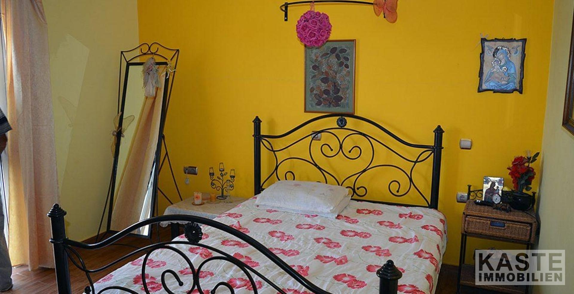 Ein kretisches Haus wie aus dem Bilderbuch - mit Holzbalken, Stein-Verzierungen, mit traditionellen Möbeln und Dekor im ganzen Haus und in den typischen Farben weiß und blau gehalten. Das Haus wurde komplett renoviert. Auf zwei Etagen befinden sich 3 Schlafzimmer, 1 Badezimmer, einen Wohnbereich, die Küche und ein weiteres Zimmer.