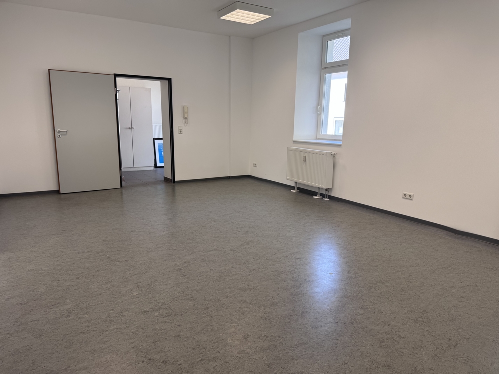 Diese Eigentumswohnung verfügt über eine Diele und zwei große, helle Zimmer, die früher als Büro genutzt wurden. Das Wohn-/Esszimmer bietet jede Menge Platz um es nach Ihren eigenen Wünschen zu gestalten. Sinnvollerweise sollte dieser große Raum eine offene Küche erhalten, damit die praktische Nutzung gewährleistet ist. Derzeit ist nämlich vom zukünftigen Schlafzimmer aus das WC zu begehen. Nach keineren Umbau-Maßnahmen ist hier aber ein größeres, vollwertiges Badezimmer vorhanden.