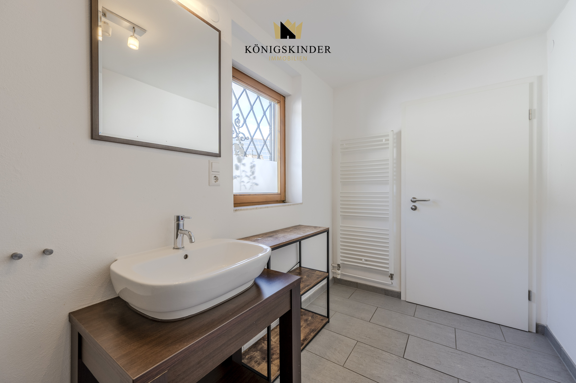 Der Kellerbereich umfasst mehrere Nutzräume, eine neue Pelletheizung (Einbau 2022) sowie eine Waschküche. Von hier aus gelangt man direkt in den Außenbereich und zur Einzelgarage. Ergänzt wird das Anwesen durch zwei Außenstellplätze sowie ein praktisches Gartenhaus zur Unterbringung von Gartengeräten.