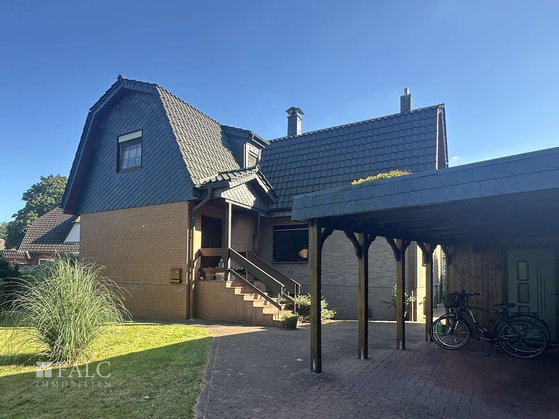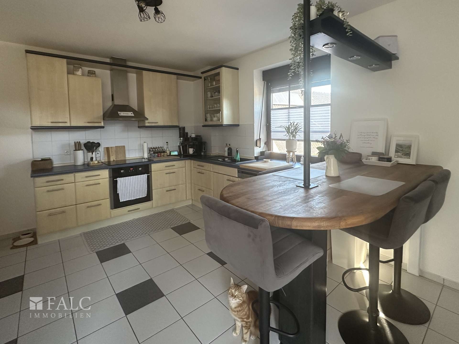 - eigene Auffahrt - eigener Eingang/Haustür - insgesamt sehr hell und freundlich - Küche mit Einbauküche und Tresen zum Sitzen, sowie Zugang zum Balkon (Fiesen) - großes helles Wohn- und Esszimmer mit Ofen und Zugang zum Balkon (Laminat) - zwei weitere Zimmer mit guten Größen zur individuellen Nutzung (Laminat) - Bad mit Wanne, Dusche und geschmackvollen dunklen Bad-Möbeln (Fliesen) - kleines Bad mit Dusche und Waschmaschinenanschluss (Fliesen) - großer sonniger Balkon - Carport mit Partyraum (und WC) - zwei Außen-Stellplätze für PKW