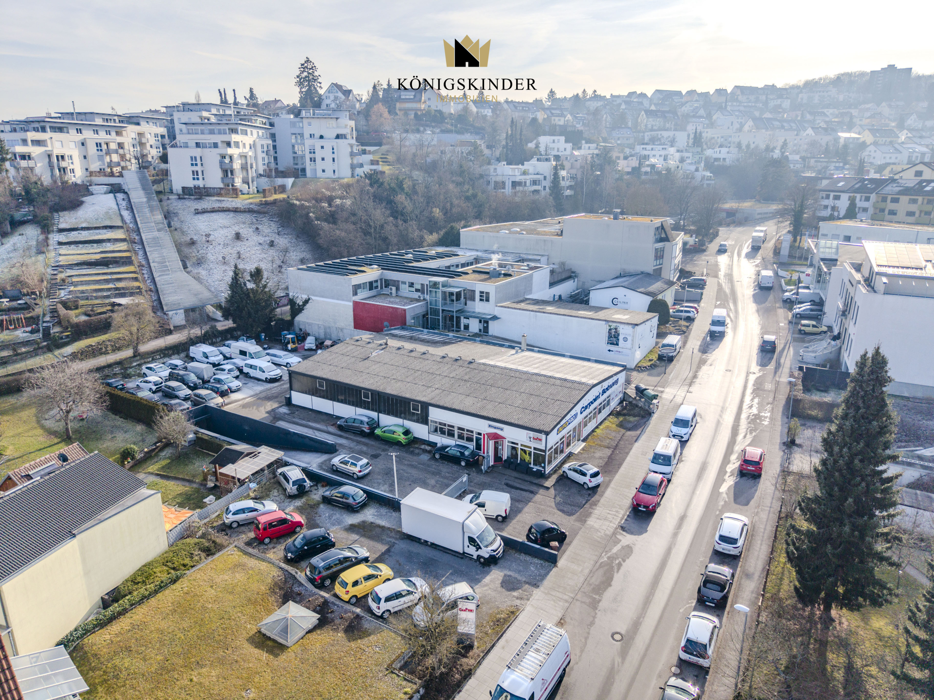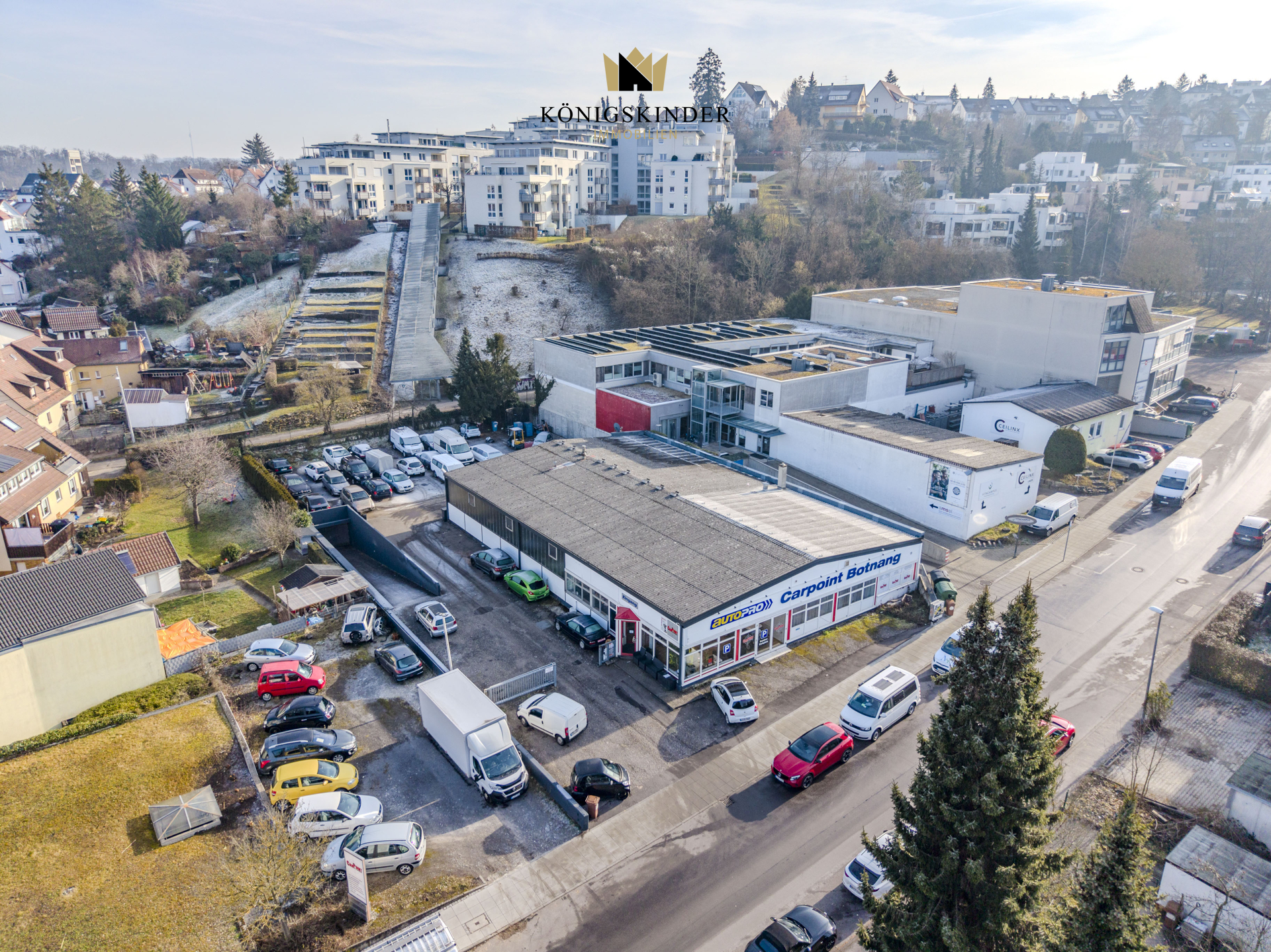 Dieses 2.079 Quadratmeter große Gewerbegrundstück in bester, absolut zentraler Lage in Stuttgart-Botnang wurde 1970 mit einer 855 Quadratmeter großen Werkstatthalle und Verkaufs- sowie Büro- und weiteren Gewerbeanteilen Gebäuden bebaut. Aktuell wird das Gelände von einem Autohaus mit Werkstatt, Reifenlager und Verkaufs- sowie Verwaltungsfläche und einem Beauty-Salon genutzt.