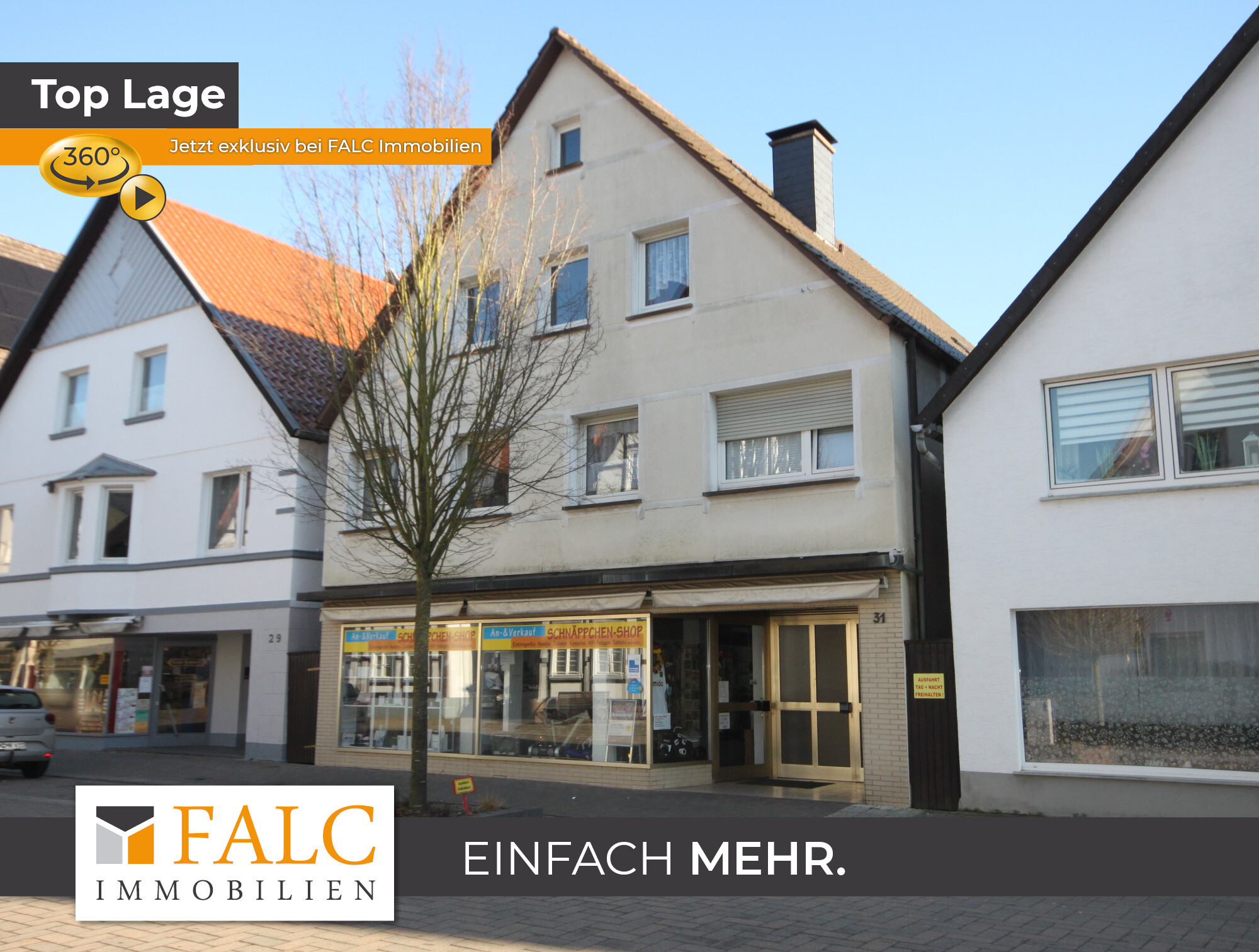 Zum Verkauf steht ein Mehrfamilienhaus in Lügde mit einer Wohnfläche von insgesamt 182 m², aufgeteilt auf zwei Wohneinheiten und einem Ladenlokal mit 75 m². Seit Juli 2025 befindet sich in diesem Ladenlokal eine Postfiliale. Das Grundstück hat eine Größe von 411 m², auf dem sich auch eine Gartenfläche von ca. 80 m² befindet.