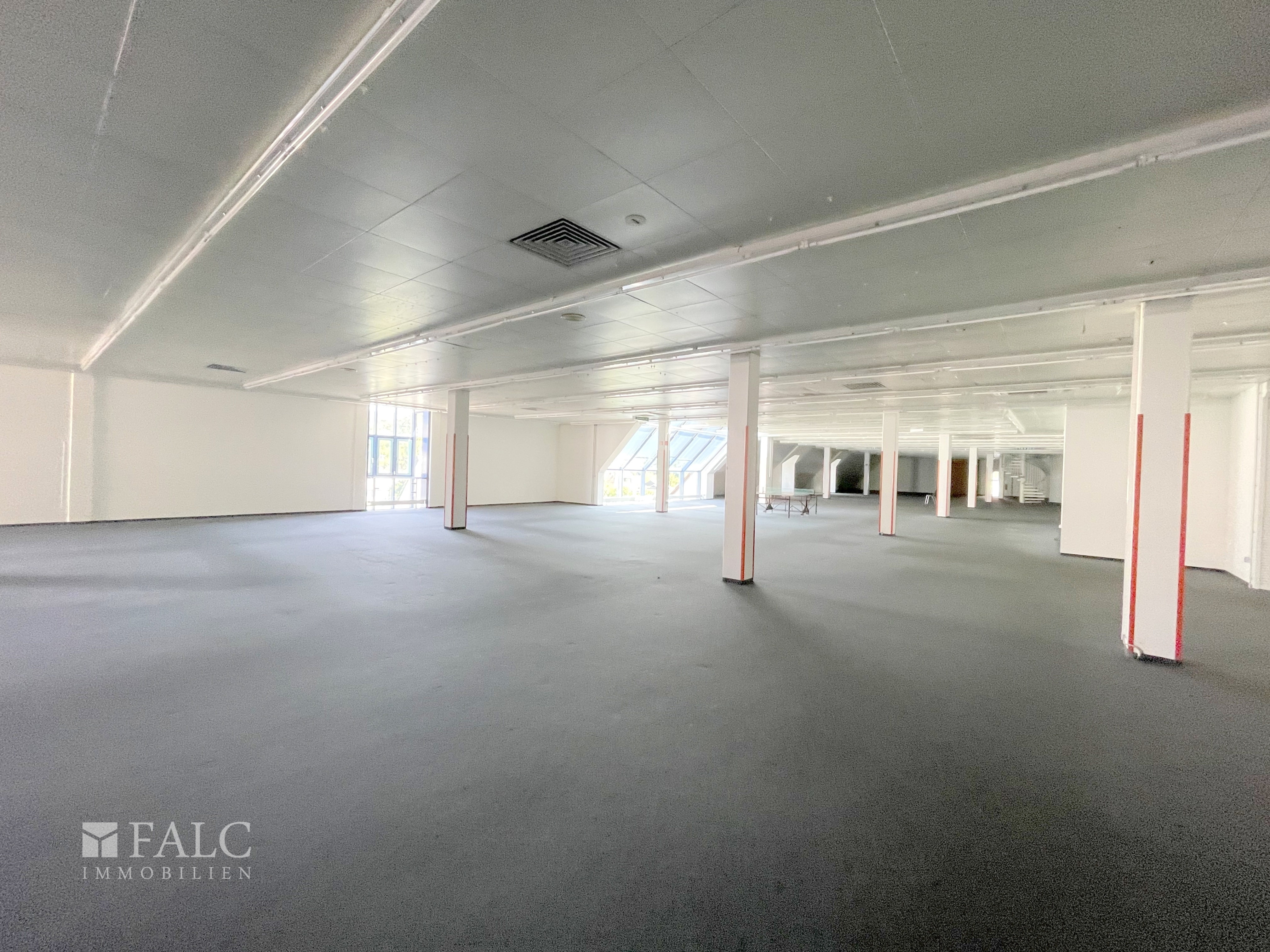 Der angrenzende Gewerbekomplex aus dem Jahr 1986 bietet auf ca. 4.493 m² vielseitig nutzbare Flächen. Die drei großen Gewerbeeinheiten sowie zwei zusätzliche Büroeinheiten (aktuell zu Wohnzwecken vermietet) bieten flexible Nutzungsmöglichkeiten. Alle Gewerbeflächen zeichnen sich durch großzügige Fensterfronten, helle Raumverhältnisse und eine ebenerdige Anlieferung aus. Die Einheiten im Erdgeschoss verfügen über repräsentative Schaufensterfronten – ideal für Einzelhandel und Publikumsverkehr. Der Gebäudekomplex ist mit einem Personenaufzug, einem Lastenaufzug sowie einer Rolltreppe ausgestattet. Klimaanlagen und moderne Lüftungssysteme gewährleisten auch in den oberen Etagen einen hohen Nutzungskomfort.