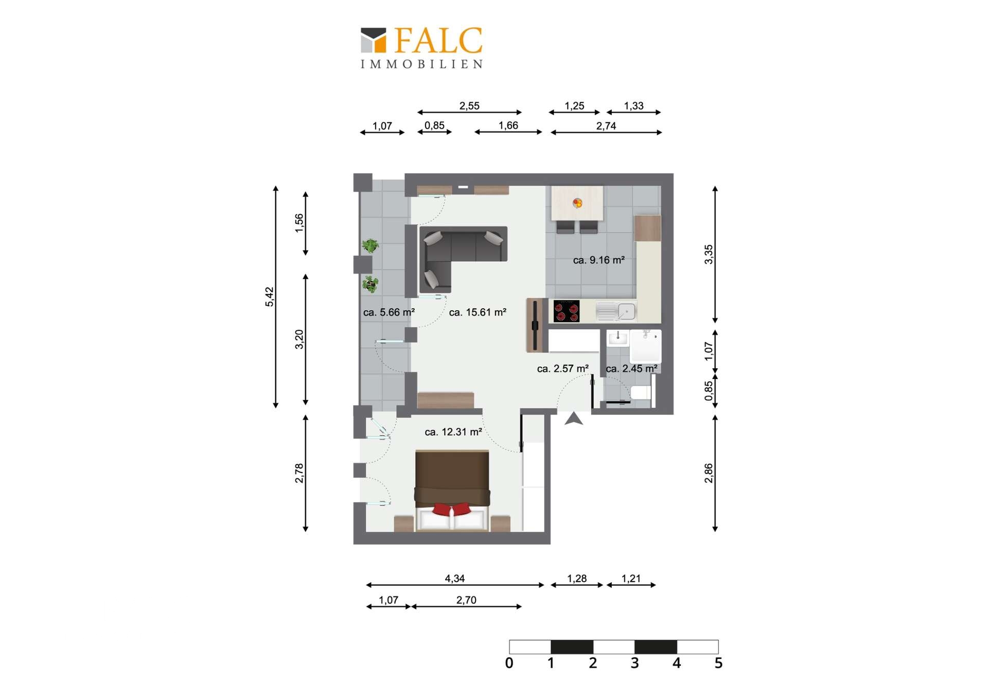 Diese Wohnung ist ideal für Singles oder Paare, die eine gut geschnittene und lichtdurchflutete Wohnung suchen, die sowohl Funktionalität als auch Gemütlichkeit bietet.
