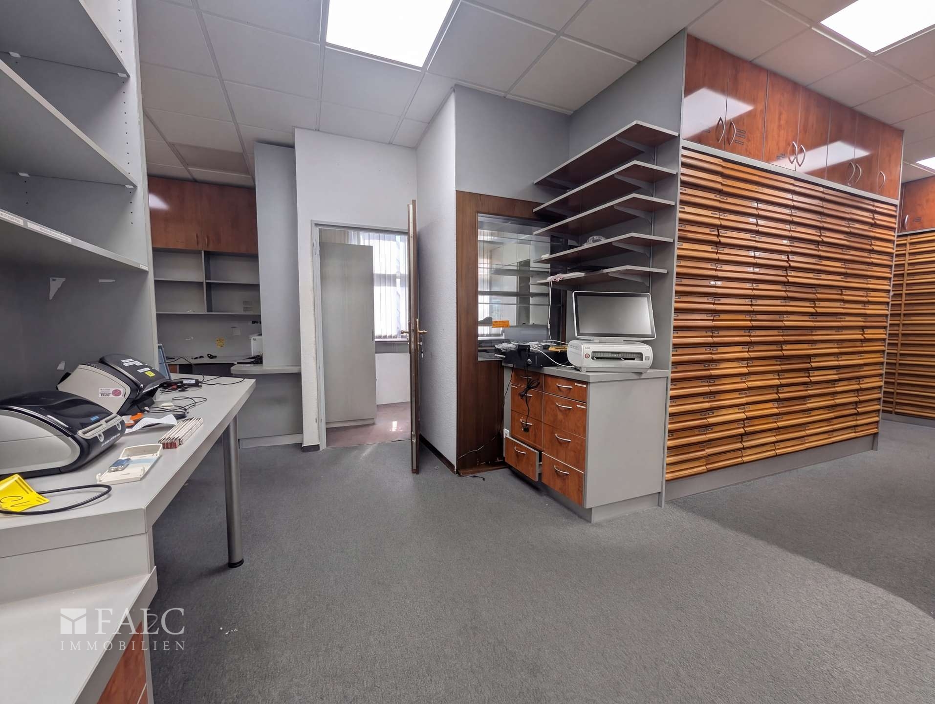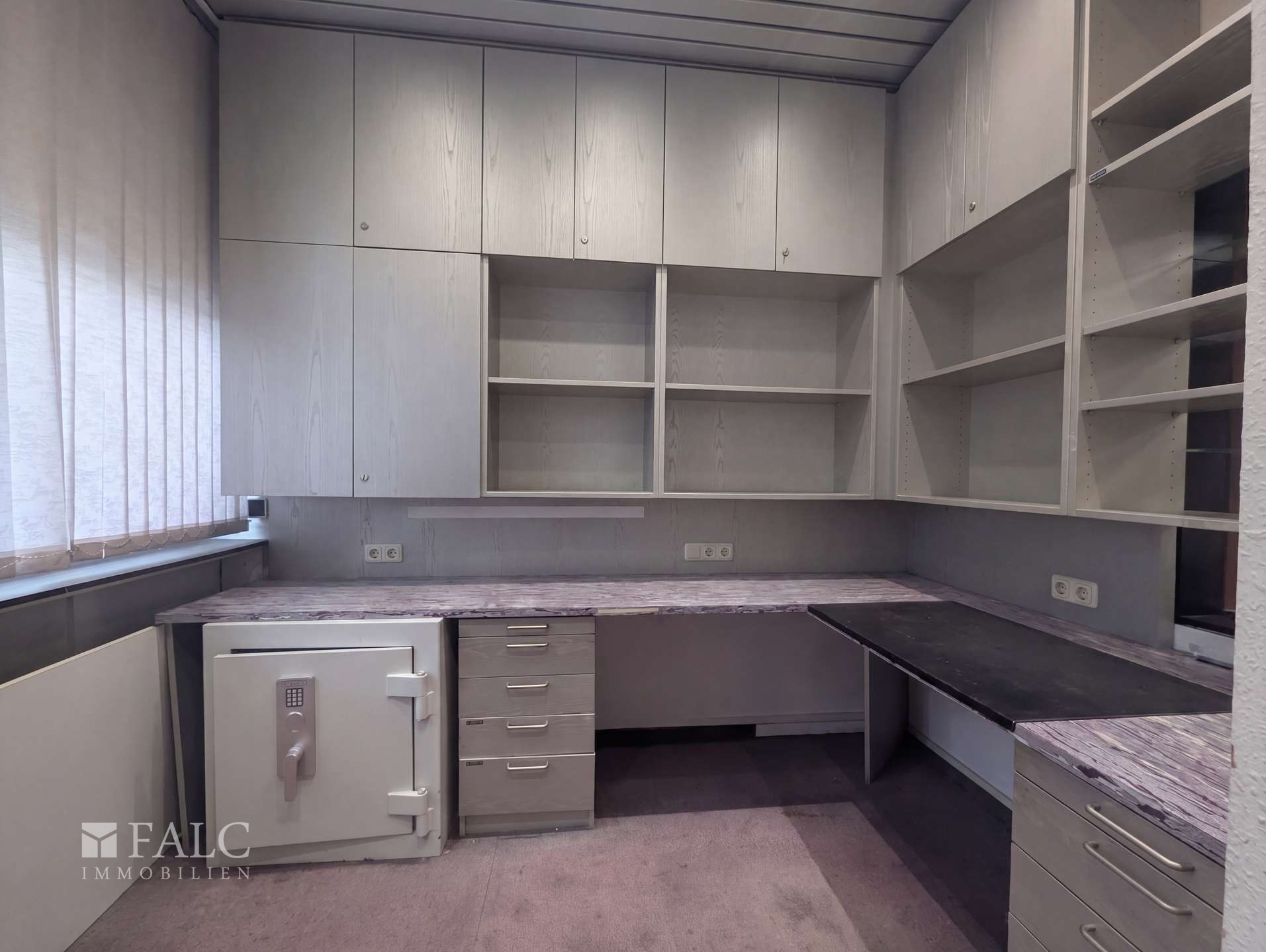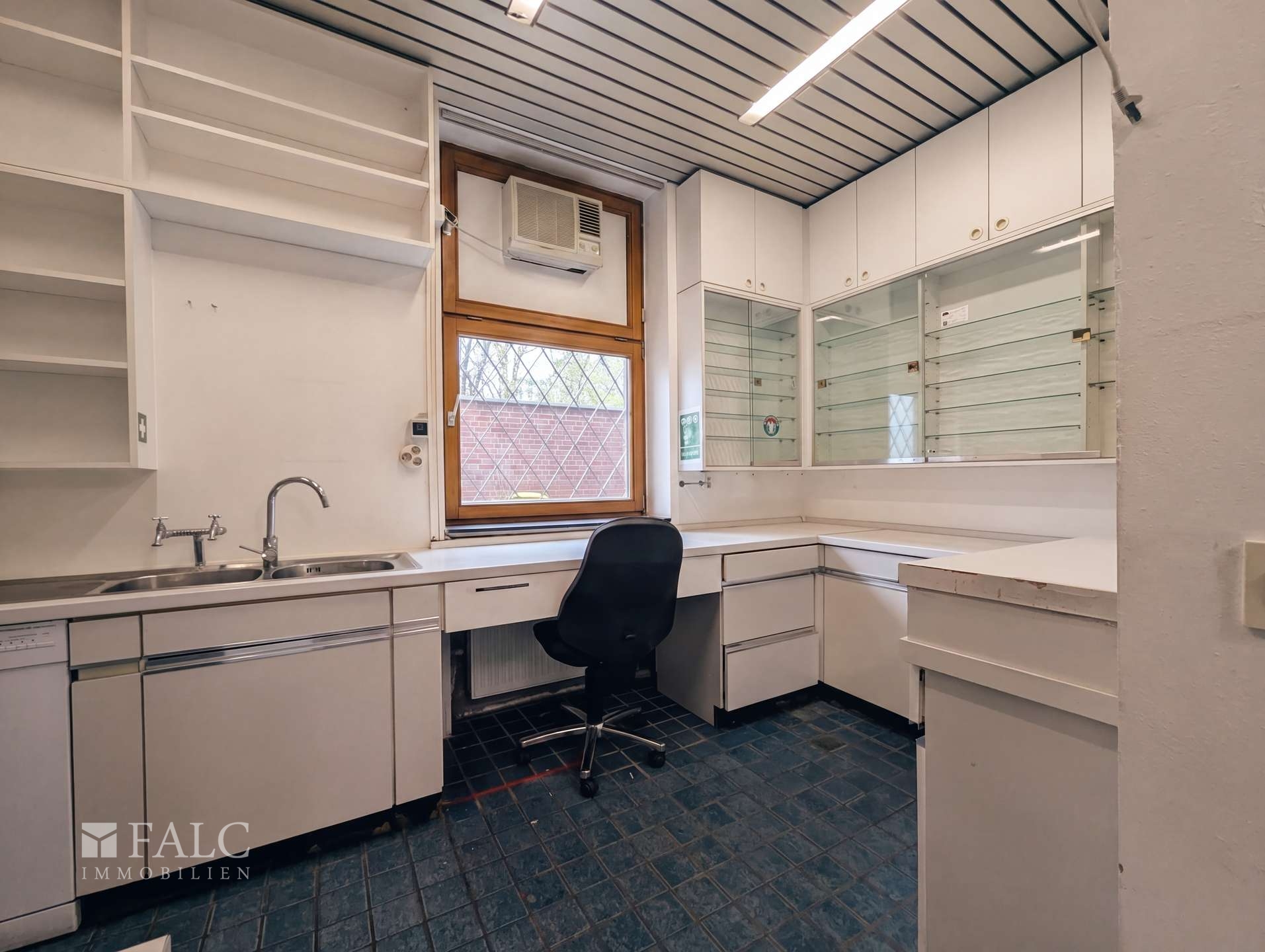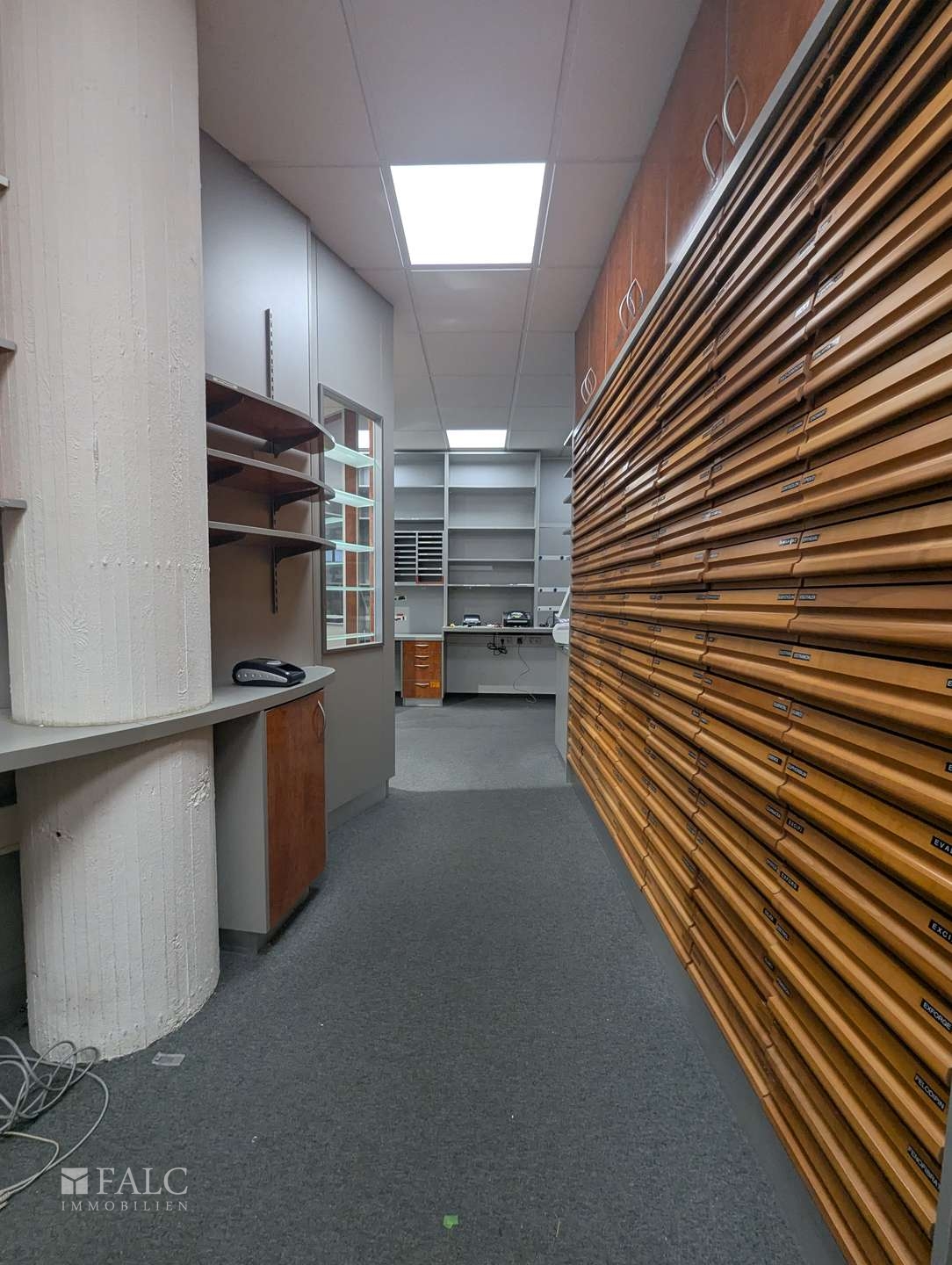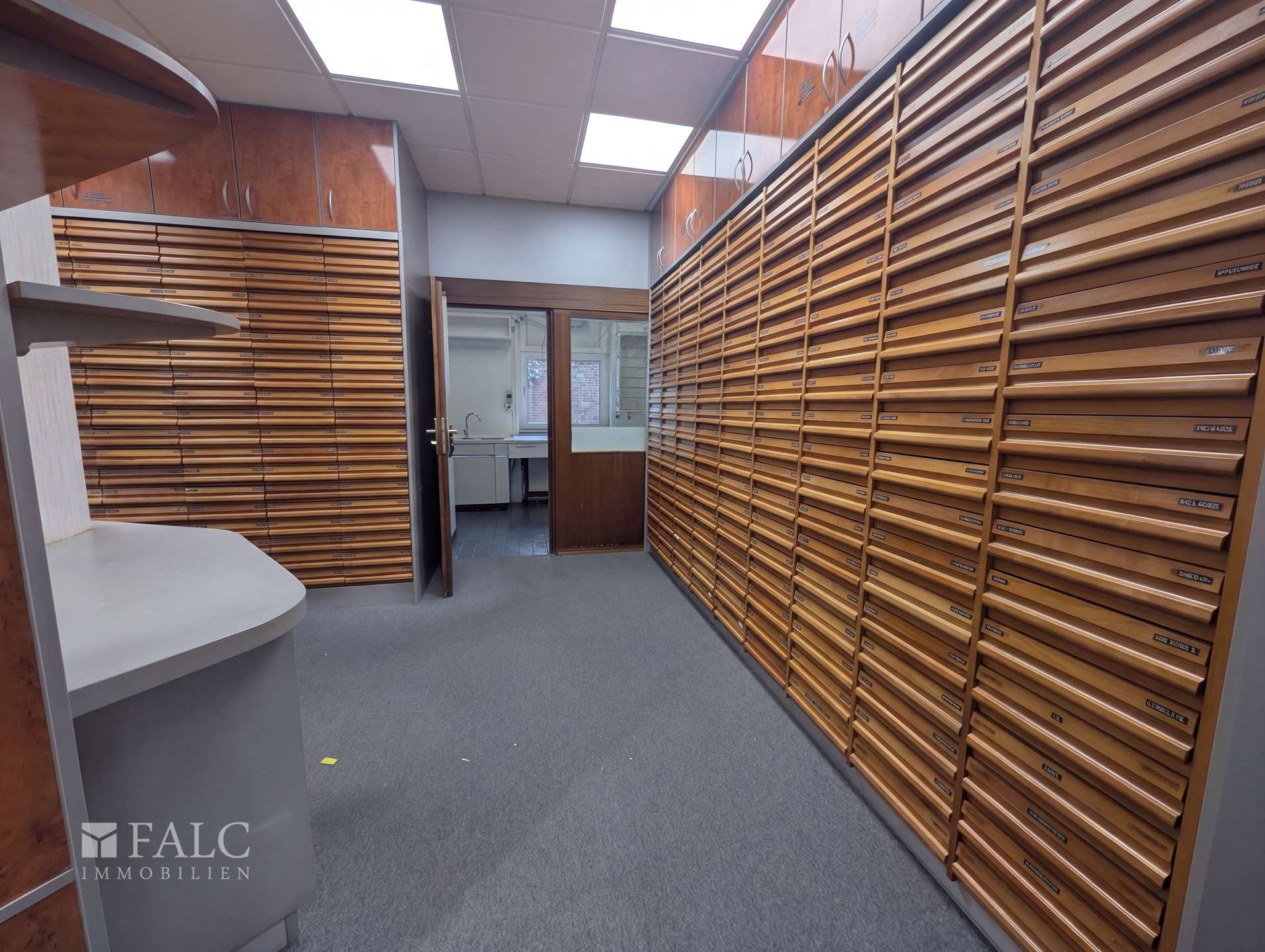 Besonders attraktiv für Gründer und Umzugswillige: Der hochwertige Innenausbau kann optional übernommen werden und erspart Ihnen kostspielige Investitionen. Maßgefertigte Glasregal-Wände im Verkaufsraum präsentieren Ihre Waren stilvoll und übersichtlich. Spezialisierte Apotheken-Ziehschränke eignen sich hervorragend für Kleinteillagerung oder als Archiv – durchdacht bis ins Detail. Eine voll ausgestattete Servicezone mit Einbauschränken, Spülbecken in Labor-Standard und großzügigen Arbeitsflächen steht bereit für vielfältige Nutzungskonzepte. Ob Kosmetikstudio, Praxis, Apotheke oder exklusiver Fachhandel – die Möglichkeiten sind so vielfältig wie Ihre Ideen.