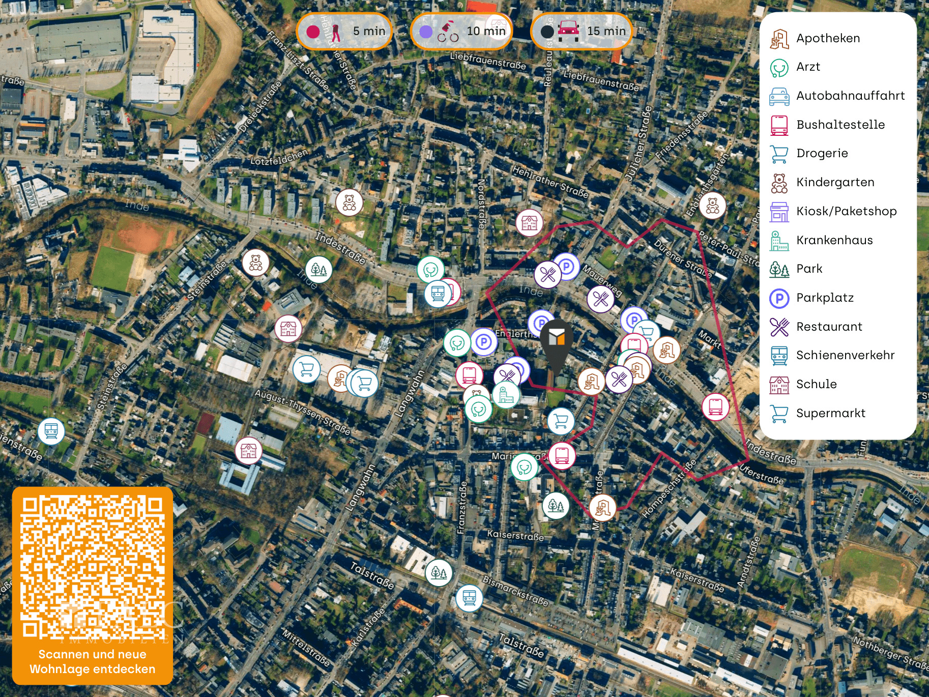In nur 5 Fahrminuten erreichen Sie die Autobahnen in alle Richtungen, den Talbahnhof und den Hauptbahnhof Eschweiler.