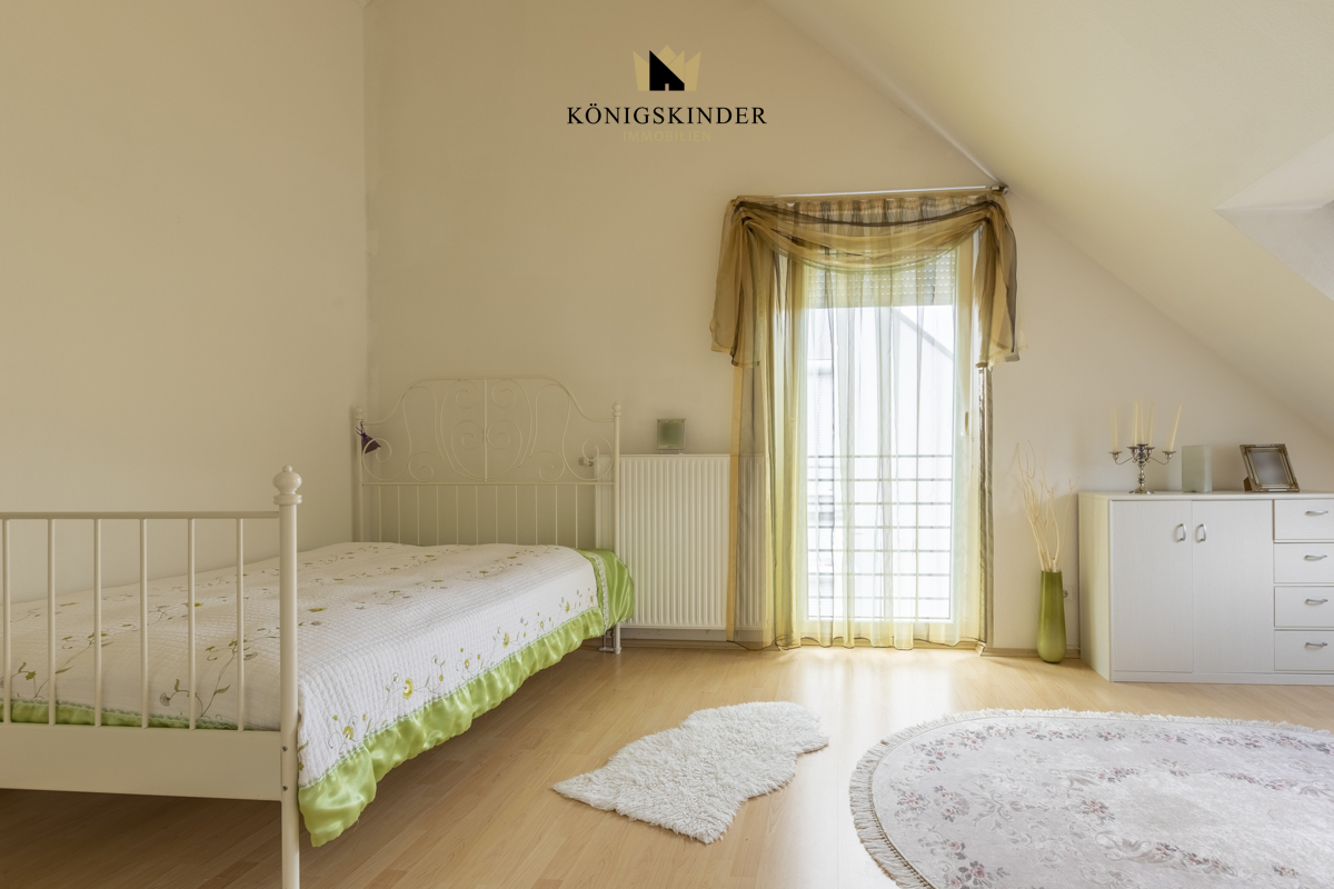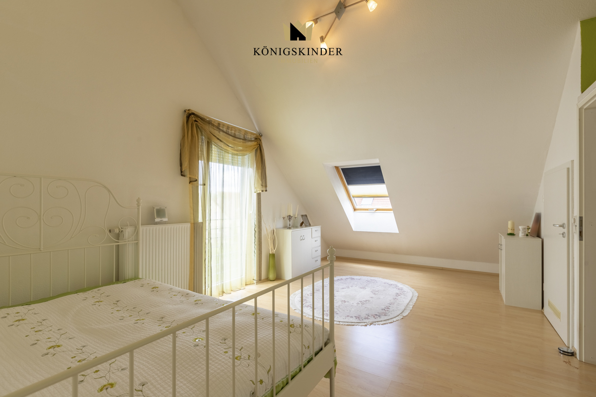 Ein besonderes Highlight ist das ausgebaute Dachgeschoss mit offener Decke bis zum First. Hier befinden sich ein großes Schlafzimmer/Kinderzimmer sowie ein weiteres Zimmer, das flexibel als Kinderzimmer/Schlafzimmer/Ankleidezimmer oder Home Office genutzt werden kann.