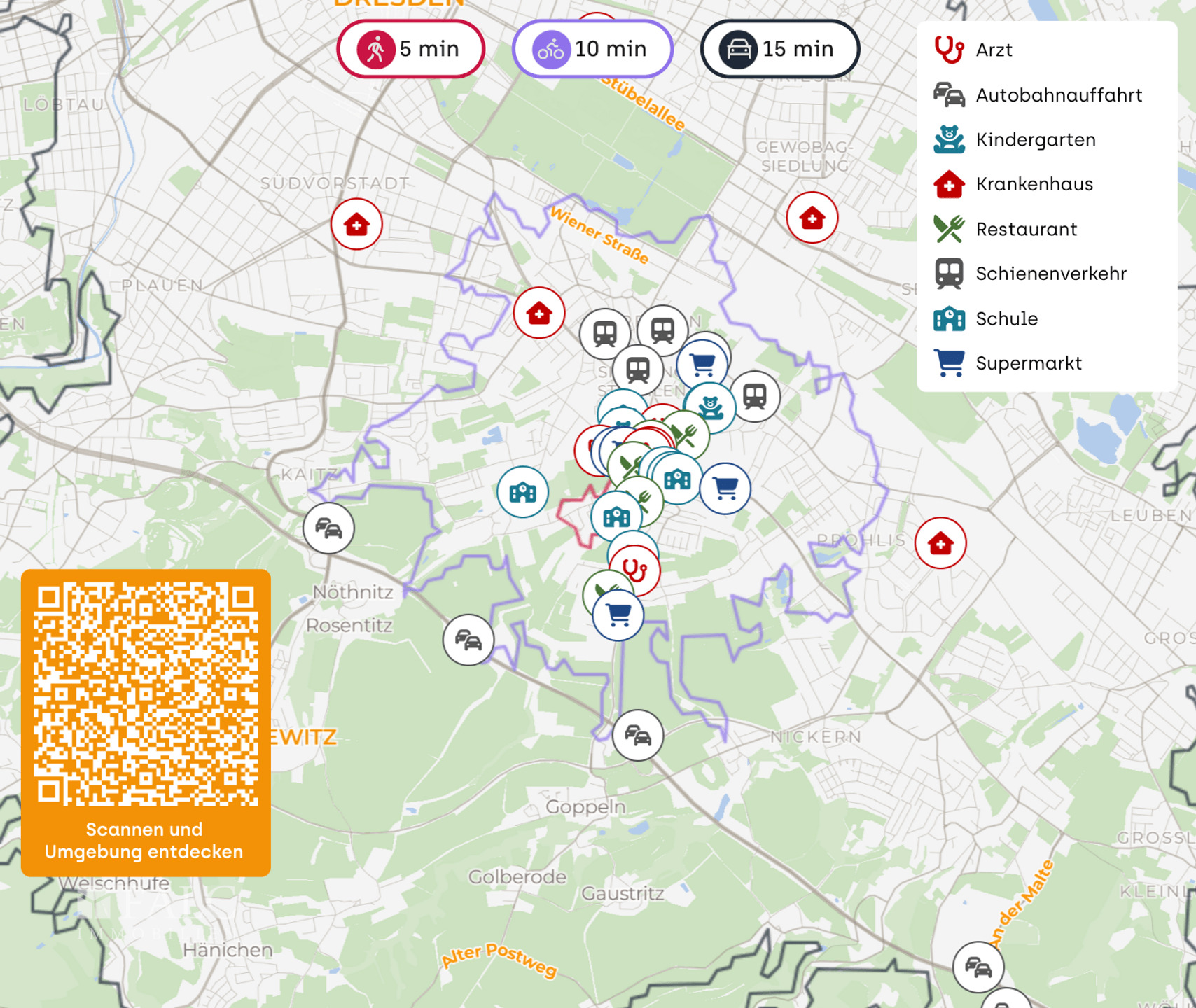 Der Flughafen Dresden ist etwa 15 Kilometer entfernt und bietet eine gute Anbindung für Reisen in alle Richtungen. Diese Lage kombiniert die Vorzüge einer ruhigen Wohngegend mit der Nähe zu wichtigen Einrichtungen und Verkehrsanbindungen, was sie besonders attraktiv für Familien macht.