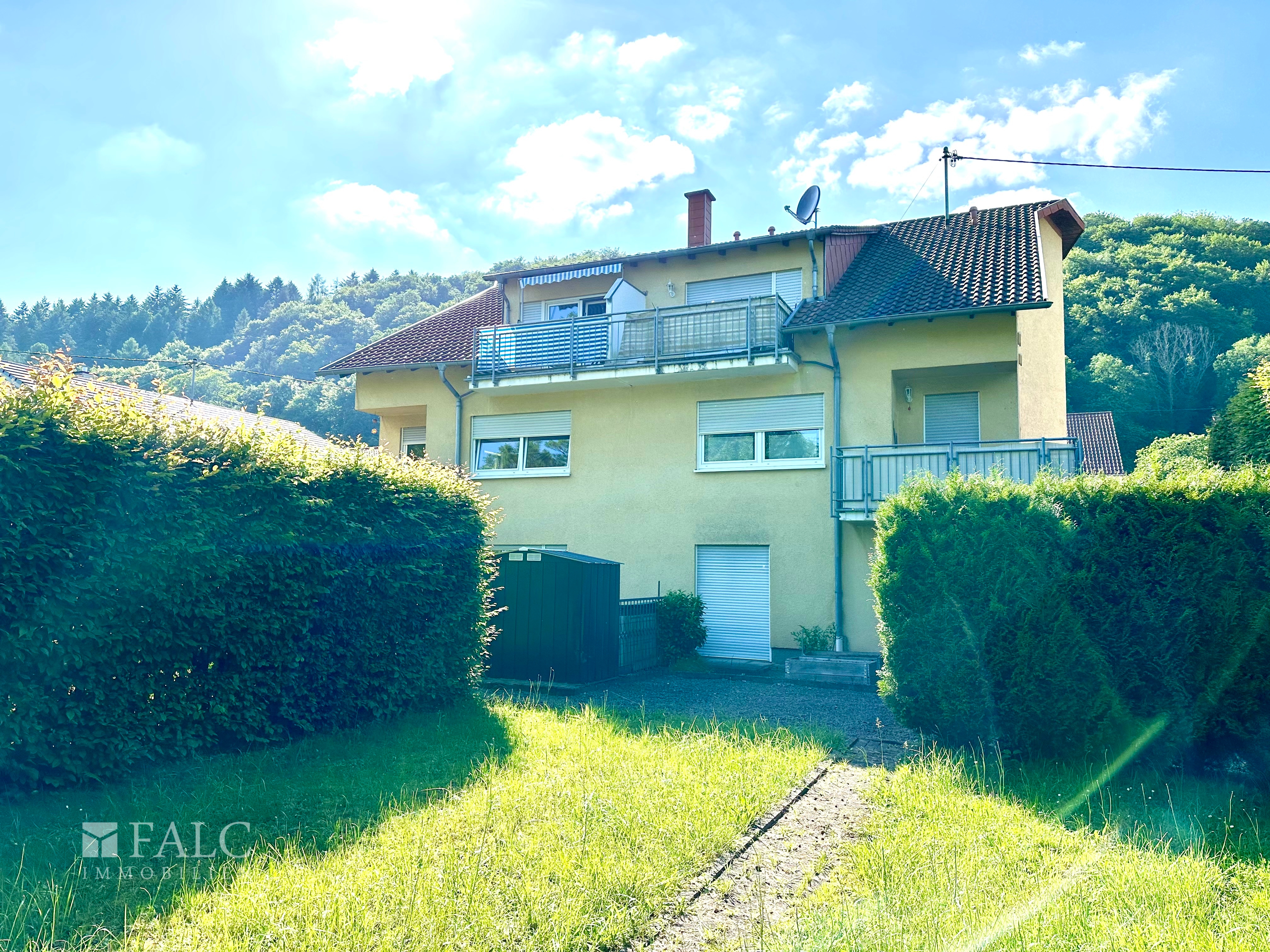 Zur Wohnung gehört ein eigener KFZ-Stellplatz sowie ein eigener Gartenanteil (gepflegter Rasen) mit Blick ins Grüne.