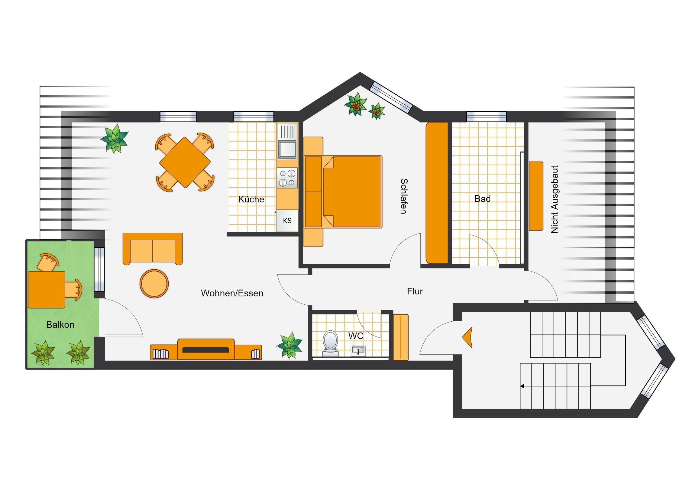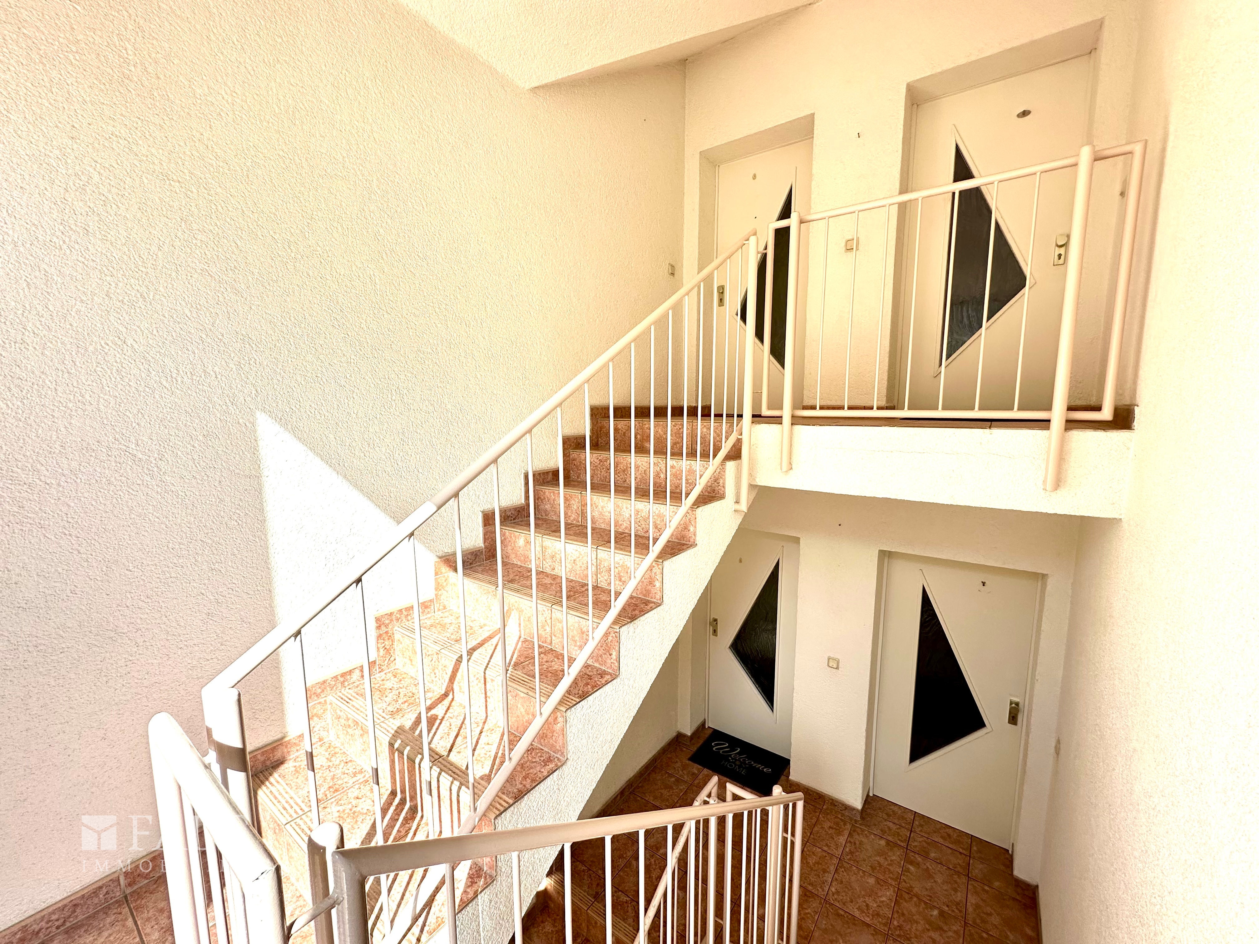Die Wohnfläche verteilt sich praktisch auf gut geschnittene Zimmer plus Balkon. Darüber hinaus verfügt die Wohnung über ein schönes Badezimmer und zusätzlichem Gäste-WC.