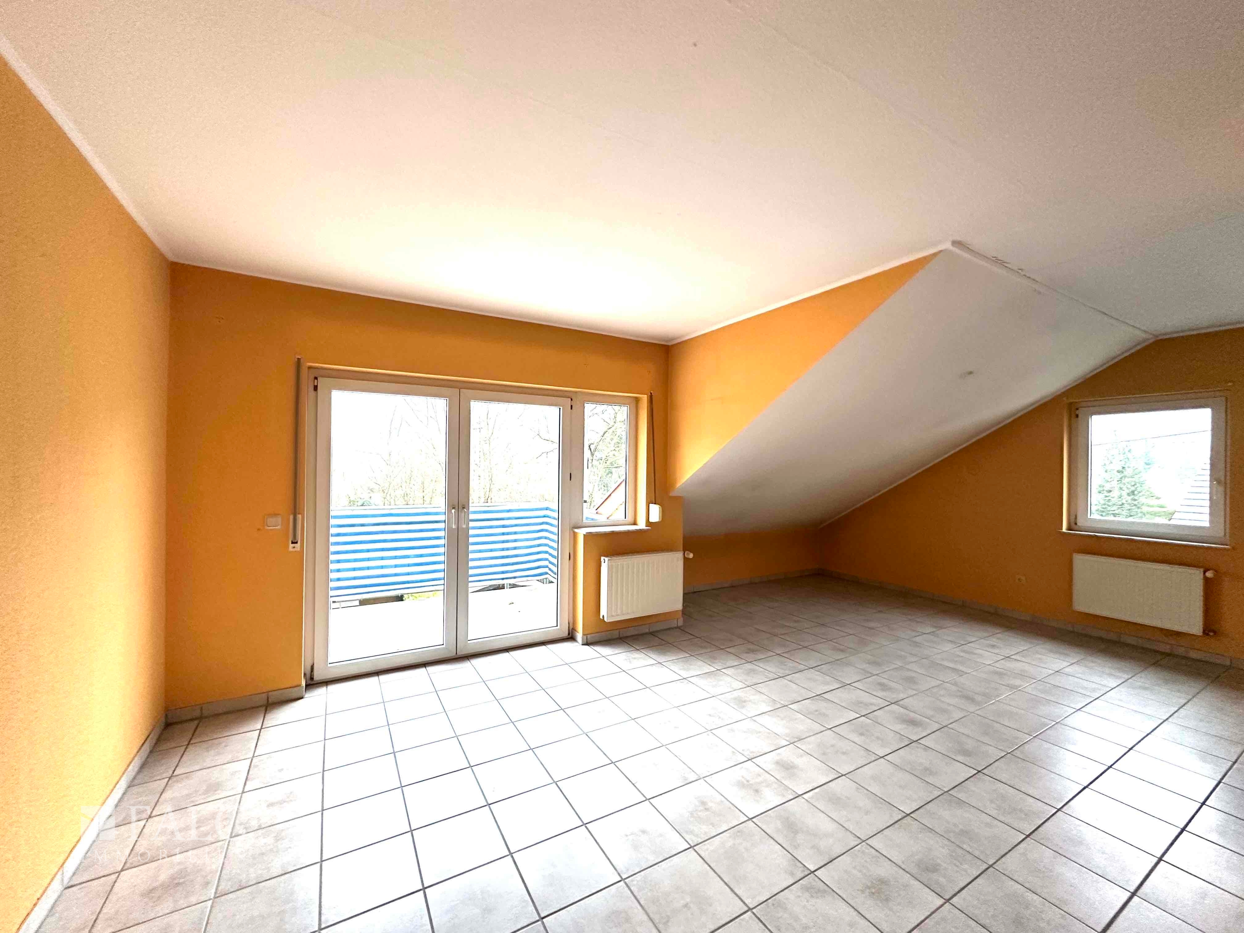 Attraktiv, modern geschnittene 2 Zimmer, Küche-Bad-Gäste-WC-Wohnung im Obergeschoss mit großzügigem Wohnzimmer und Zugang zum Balkon plus halboffene Küche.