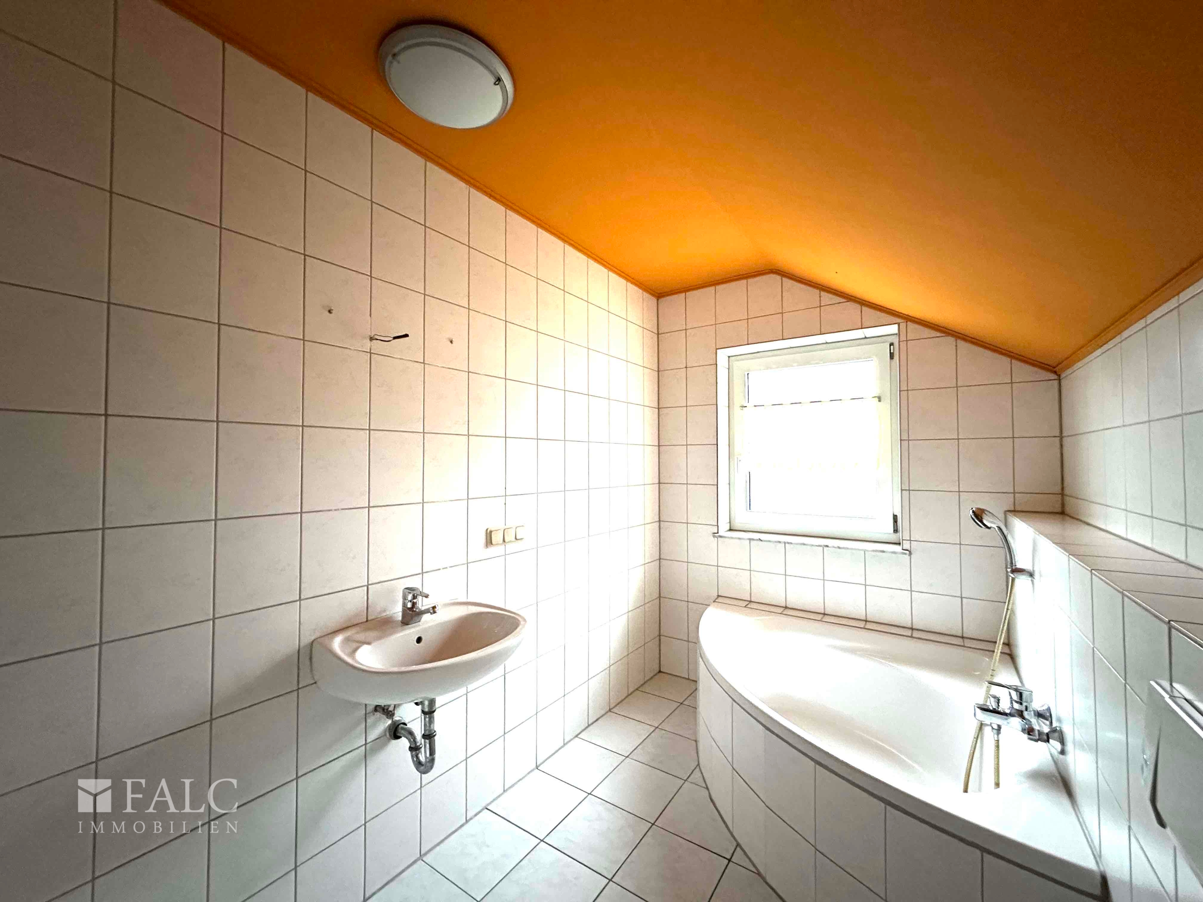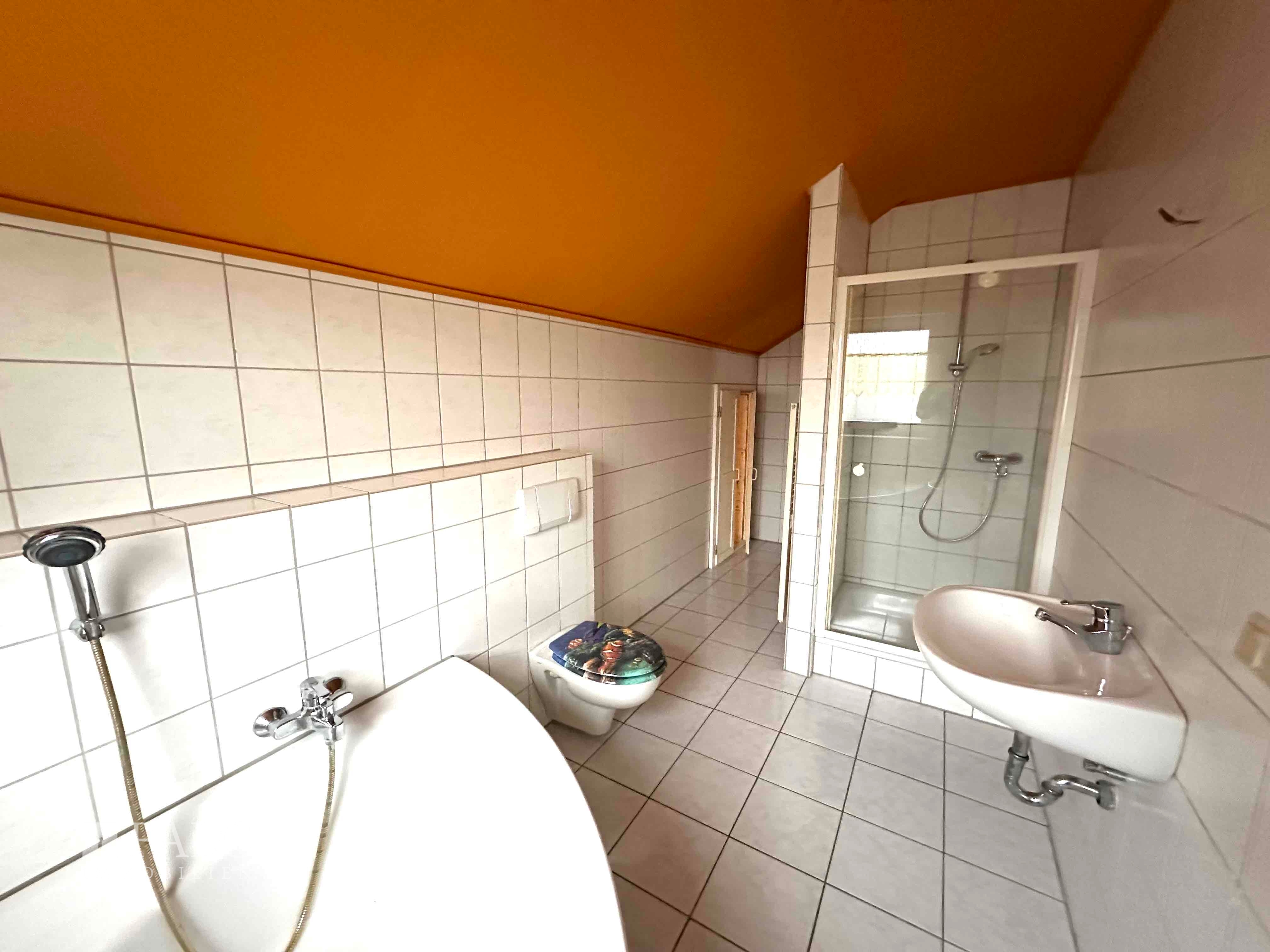 Besonders praktisch: Geräumiges Tageslichtbad mit Wanne und Dusche sowie separates Gäste-WC!