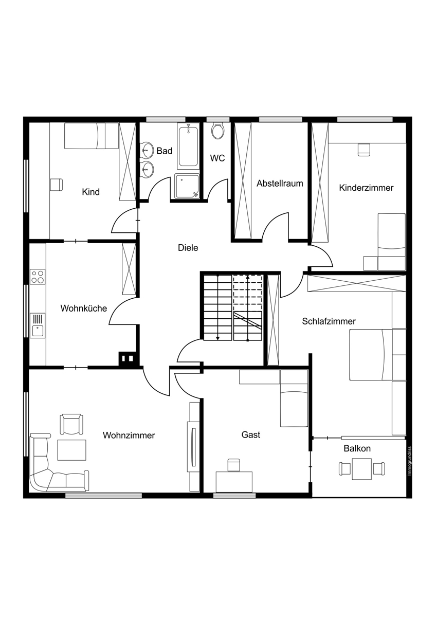 Lage Die Wohnung befindet sich in einer ruhigen, aber dennoch zentralen Lage. Einkaufsmöglichkeiten, Schulen, Kindergärten und Ärzte sind in wenigen Minuten erreichbar. Die gute Anbindung an den öffentlichen Nahverkehr und die wichtigsten Verkehrswege sorgt für kurze Wege und hohe Flexibilität im Alltag.