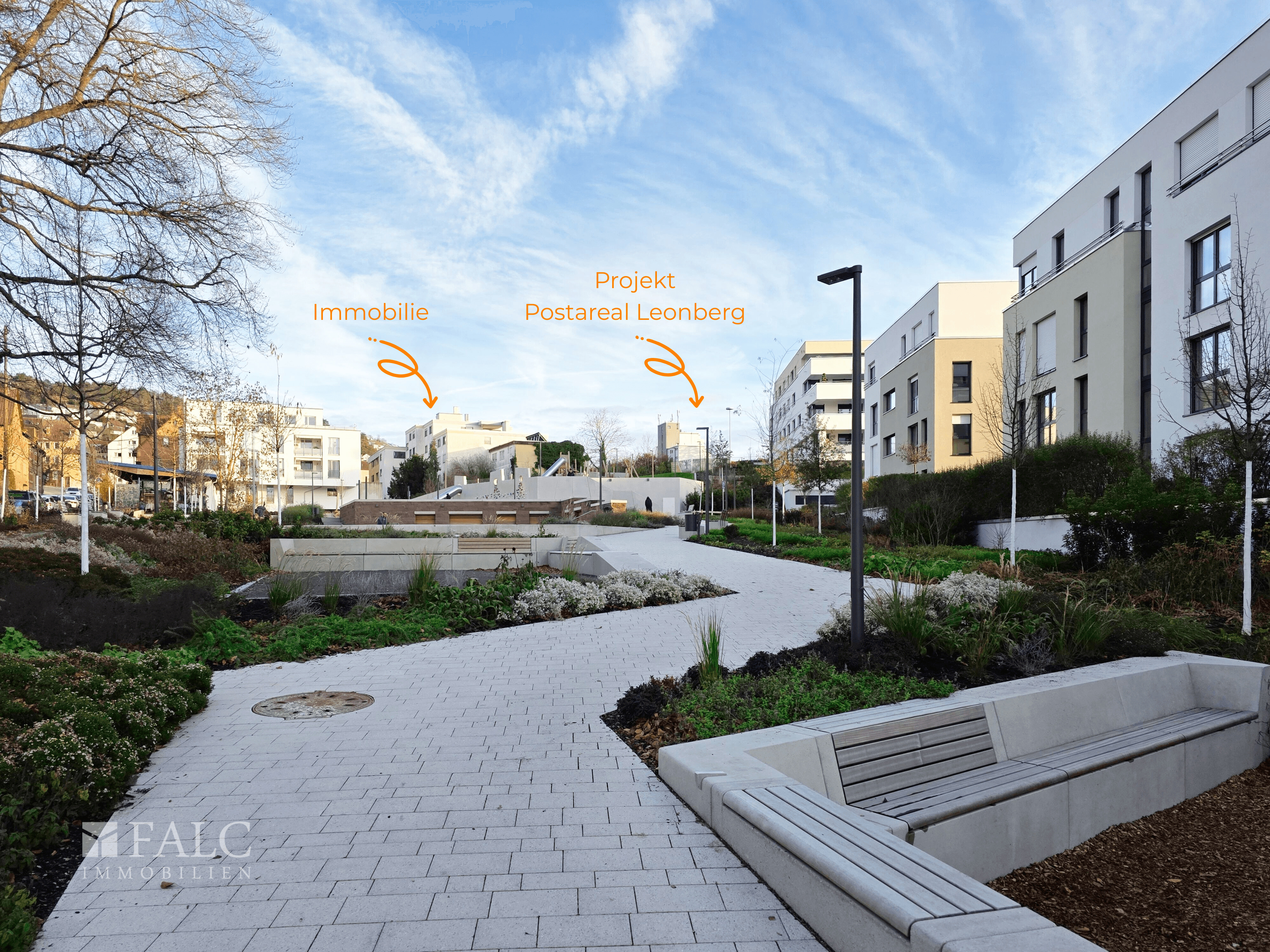 Zentral in Leonberg gelegen, profitiert die Wohnung von der Nähe zum neuen Stadtgarten und zum geplanten Projekt Postareal Leonberg, das künftig Wohnen, Arbeiten, Einkaufen und Freizeit in einem Quartier vereinen wird. Diese Entwicklung wird die Innenstadt nachhaltig beleben und kurze Wege zwischen Altstadt und neuer Stadtmitte schaffen.