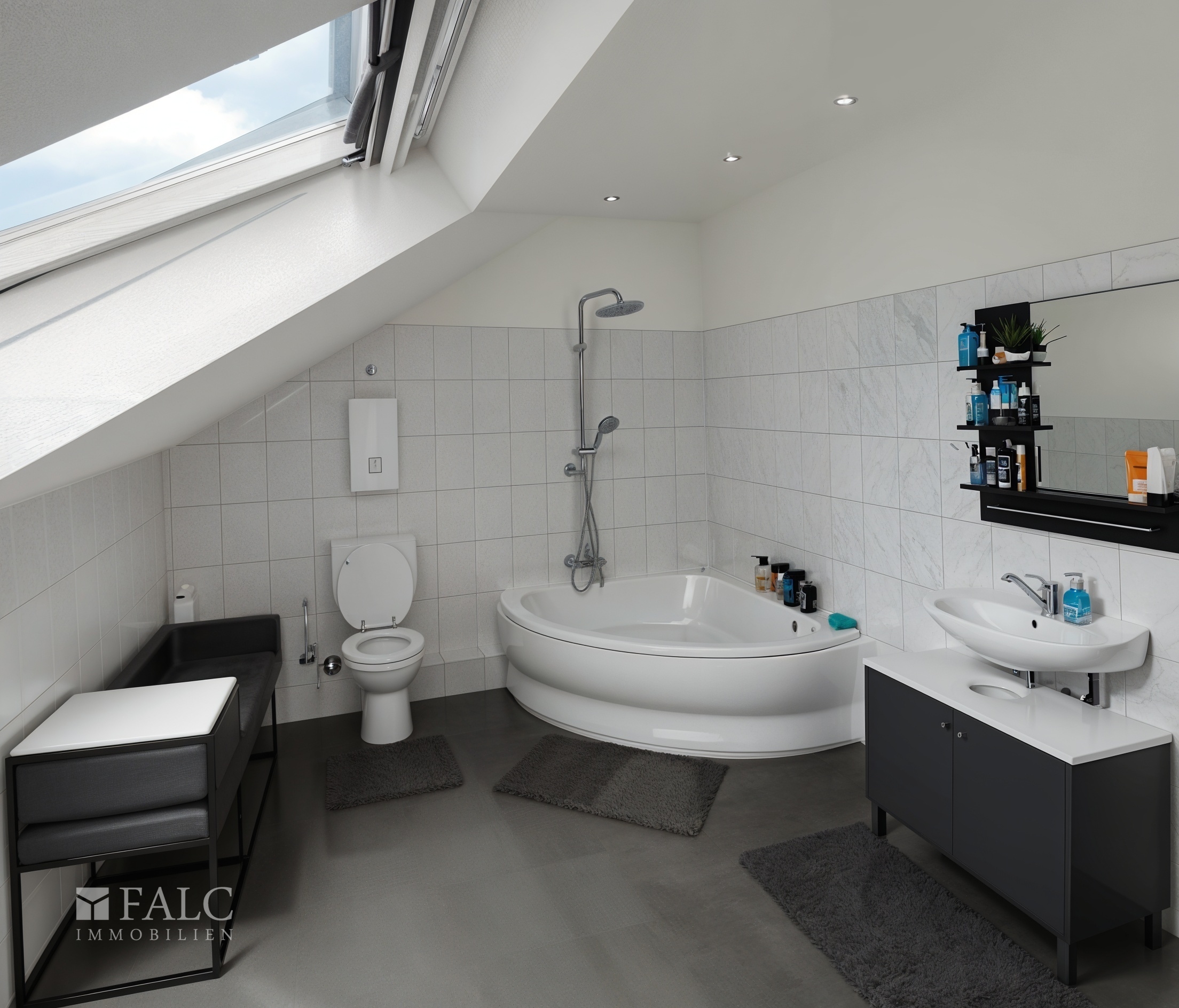 Badezimmer: Tageslichtbad mit Badewanne und modernen Armaturen – funktional und gepflegt