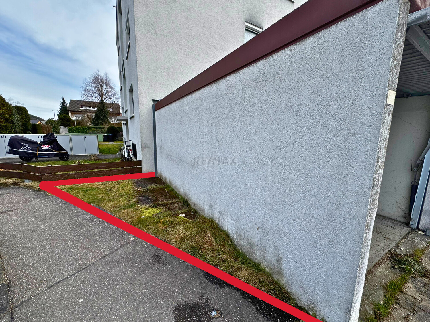 Neben der Garage befindet sich eine zusätzliche Fläche, die sich ideal als Motorradstellplatz oder für eine Fahrradgarage eignet.
