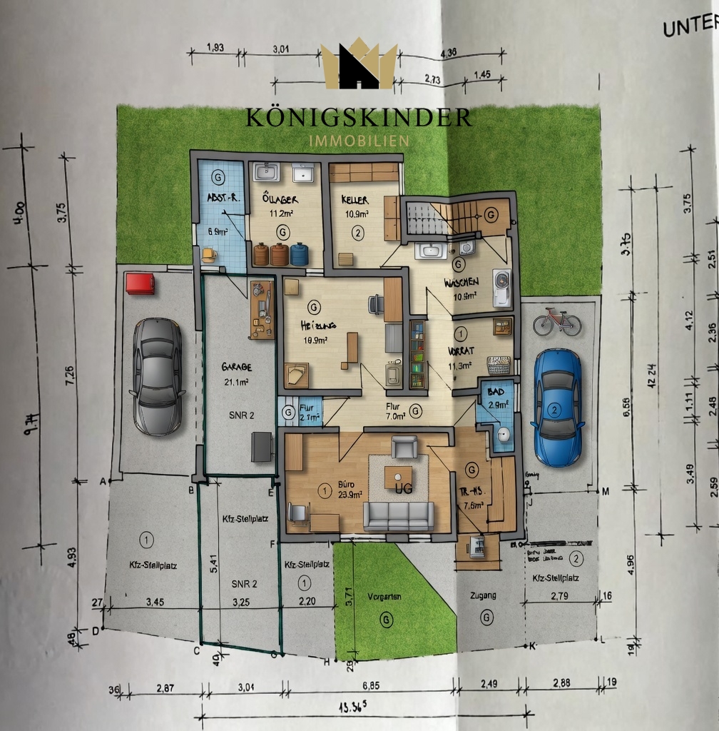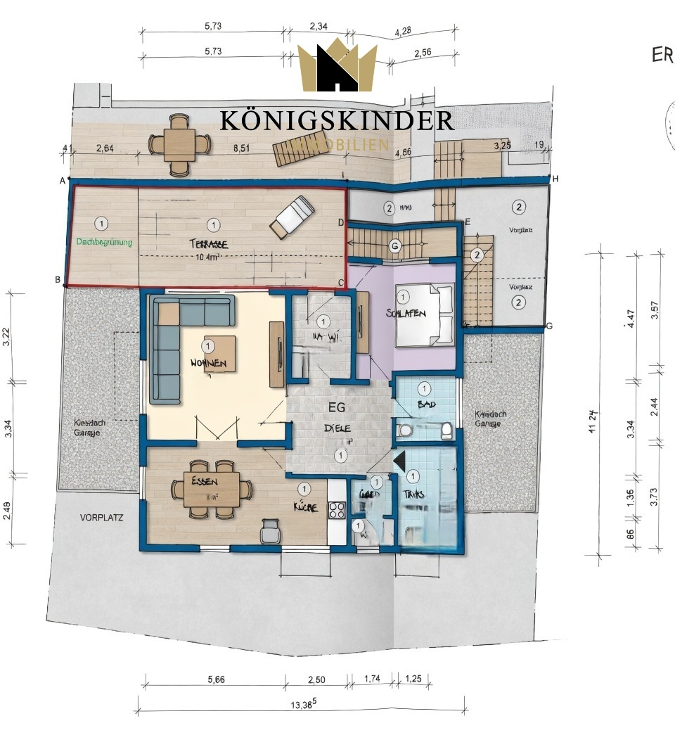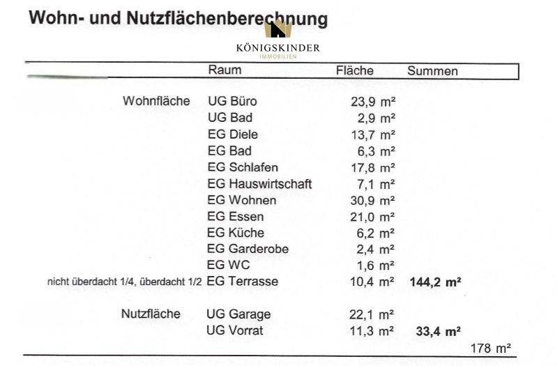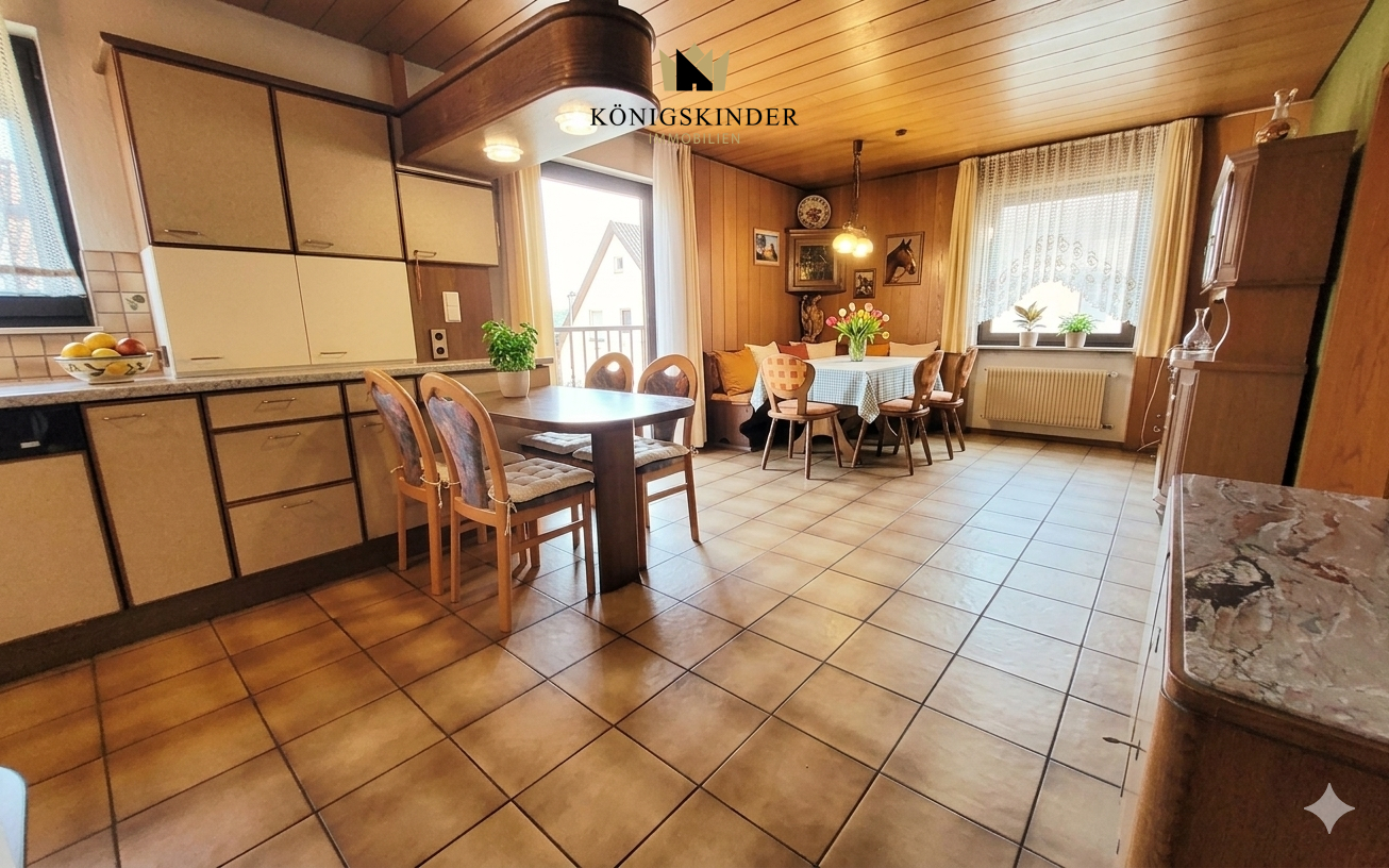 * Große und lichterfüllte 5,5 Zimmer Wohnung in 2-FH * Sonnenterrasse mit 8,50 Breite, el. Markise und Minigärtchen * Große Wohnküche mit mehr als 27qm und französischem Balkon * Herrliches, lichtdurchflutetes Wohnzimmer mit rund 31qm u. weiße Holzdecken * Zugang zur Terrasse über große Schiebtür * Großzügige Fensterfronten teils als Flügelfenster * Wohnzimmer mit el. Rollläden ausgestattet * Kaminofen mit gemütlicher Sitzbank * sep. Gäste WC * Großes Tageslichtbad mit Wanne, Dusche, Bidet, WC, Doppelwaschtisch & Handtuchwärmer * Weitläufiges Schlafzimmer, auf Wunsch inkl. hochwertiger Möblierung in Echtholz * Schlafzimmer mit Echtholz-Stäbchenparkett * Fußbodenheizung im Wohnzimmer, Flur, Bad, * Ölzentralheizung * Zusätzlicher Raum im EG als ELW, Büro, Hobby ... * Bad im EG mit Dusche, WC und Waschtisch * Kellerraum * Gem. Waschküche * Gem. Lagerraum * Große Garage mit el. Antrieb und Sender * MEA 5/10 * Grundsteuer: 156,23 € / Quartal