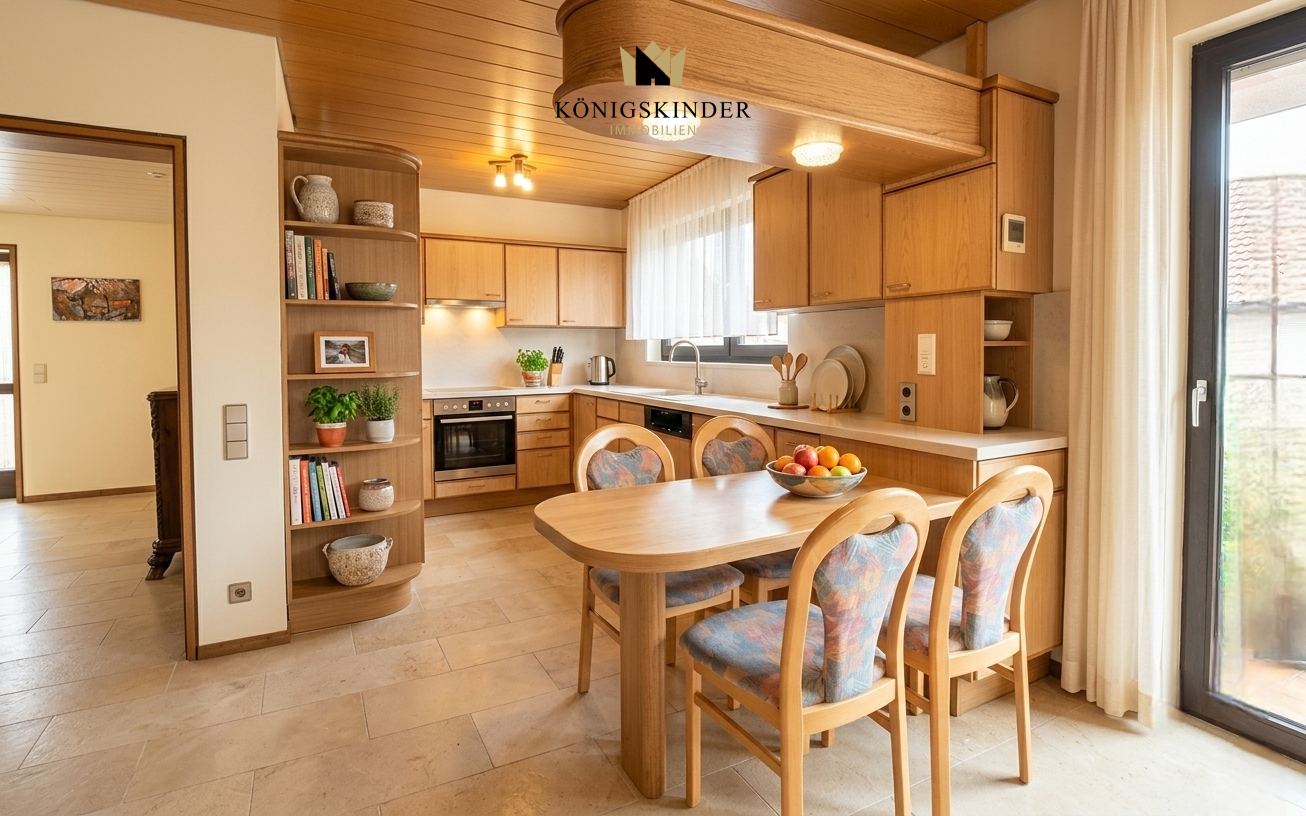 Wohnen mit Licht, Weite & Lebensqualität – Traumhafte 5,5-Zimmer-Wohnung mit Sonnenterrasse & Kamin! Willkommen in Ihrem neuen Zuhause – einer außergewöhnlich großzügigen und lichtdurchfluteten 5,5-Zimmer-Wohnung in einem gepflegten 2-Familienhaus. Hier vereinen sich stilvolles Wohnen, durchdachte Raumaufteilung und ein herrliches Wohngefühl zu einem Ort, an dem Sie jeden Tag genießen werden. Bereits beim Betreten spüren Sie die besondere Atmosphäre: Großzügige Fensterfronten, teils als elegante Flügelfenster ausgeführt, durchfluten die Räume mit Tageslicht und schaffen eine warme, einladende Wohnqualität. Das Herzstück der Wohnung bildet die beeindruckende Wohnküche mit über 27 m² – ein Ort für Genuss, Geselligkeit und gemeinsame Momente. Der französische Balkon verleiht ihr zusätzlich einen charmanten, luftigen Charakter. Ein absolutes Highlight ist das rund 31 m² große Wohnzimmer mit stilvollen weißen Holzdecken. Die großen Schiebeelemente öffnen sich zur sonnigen Terrasse mit beeindruckenden 8,50 Metern Breite – ideal für entspannte Stunden im Freien. Die elektrische Markise sorgt dabei jederzeit für angenehmen Schatten. An kühleren Tagen genießen Sie die wohlige Wärme des Kaminofens mit gemütlicher Sitzbank – Ihr persönlicher Rückzugsort. Das weitläufige Schlafzimmer überzeugt mit edlem Echtholz-Stäbchenparkett und bietet auf Wunsch hochwertige Echtholz-Vollmöblierung – einziehen und wohlfühlen! Das großzügige Tageslichtbad lässt keine Wünsche offen: Badewanne, Dusche, Bidet, WC, Doppelwaschtisch sowie ein Handtuchwärmer sorgen für Komfort auf hohem Niveau. Ein separates Gäste-WC ergänzt das Raumangebot ideal. Zusätzlichen Mehrwert bietet ein flexibel nutzbarer Raum im Erdgeschoss – perfekt als Homeoffice, Hobbyraum oder Einliegerbereich. Ein weiteres Bad mit Dusche und WC im EG sorgt hier für maximale Unabhängigkeit. Abgerundet wird dieses attraktive Angebot durch praktische Gemeinschaftsflächen wie Waschküche und Lagerraum, einen eigenen Kellerraum sowie eine großzügige Garage mit elektrischem Antrieb. Fazit: Mit ein wenig liebevoller Zuwendung und handwerklichem Können ist diese Immobilie ideal für Paare, Familien oder anspruchsvolle Eigennutzer, die Wert auf Raum, Licht und besondere Wohnqualität legen. Ein Zuhause mit Charakter, Charme und vielen Möglichkeiten – überzeugen Sie sich selbst!