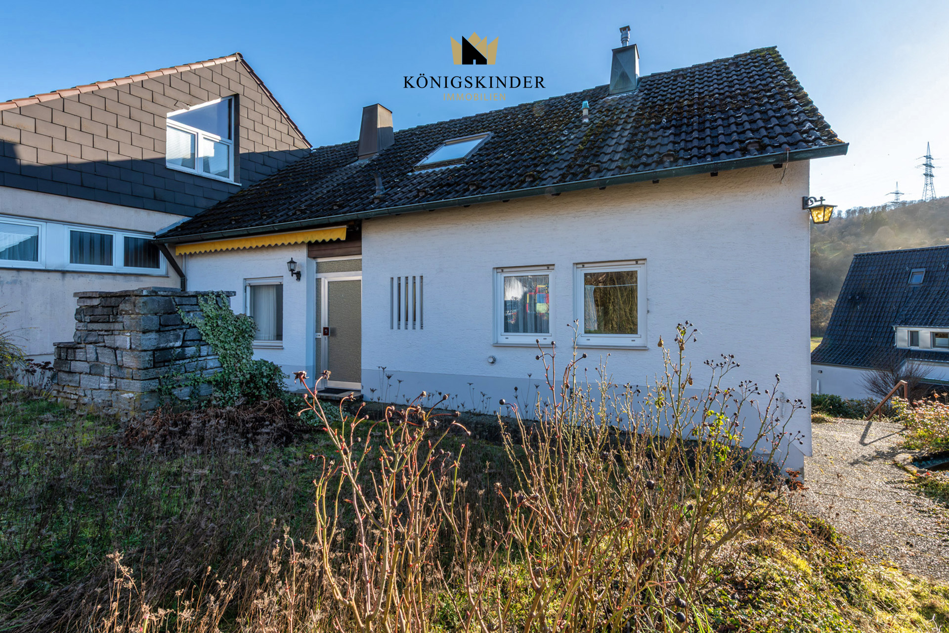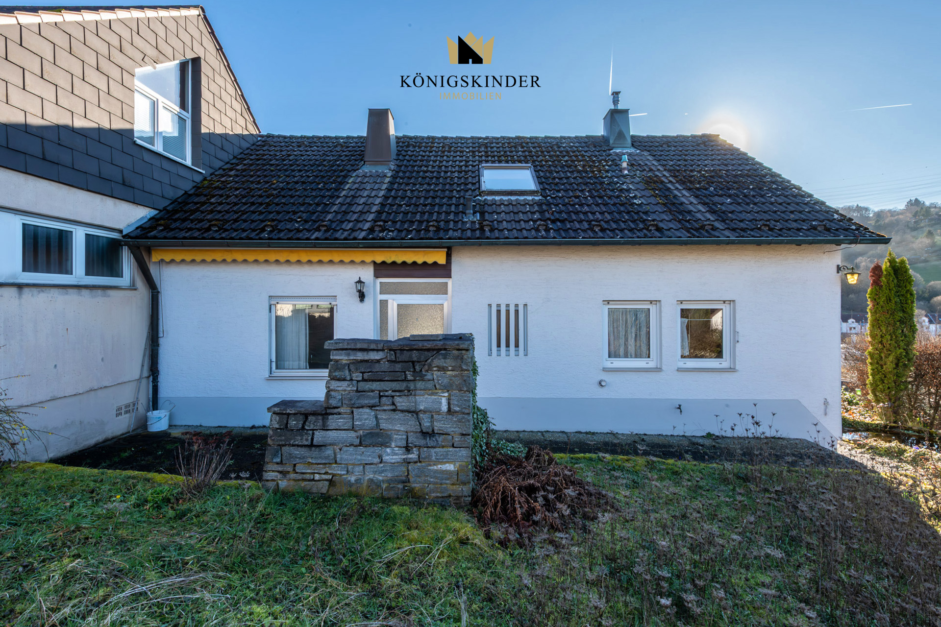 - insgesamt 5 Zimmer - einen Abstellraum - ein separates WC - ein Badezimmer mit bodentiefer Dusche und Waschtisch - eine Küche - einen Vorgarten mit Balkon und einen Garten mit Terrasse hinter dem Haus - eine Doppelgarage - einen Hobbyraum - eine Waschküche - einen Weinkeller - Gas Einzelöfen aus dem Jahre 1970 - 2- fach verglaste Kunstoffenster - ruhige Aussichtslage im Grünen - neuwertige Strom-, Gas- und Wasserleitungen