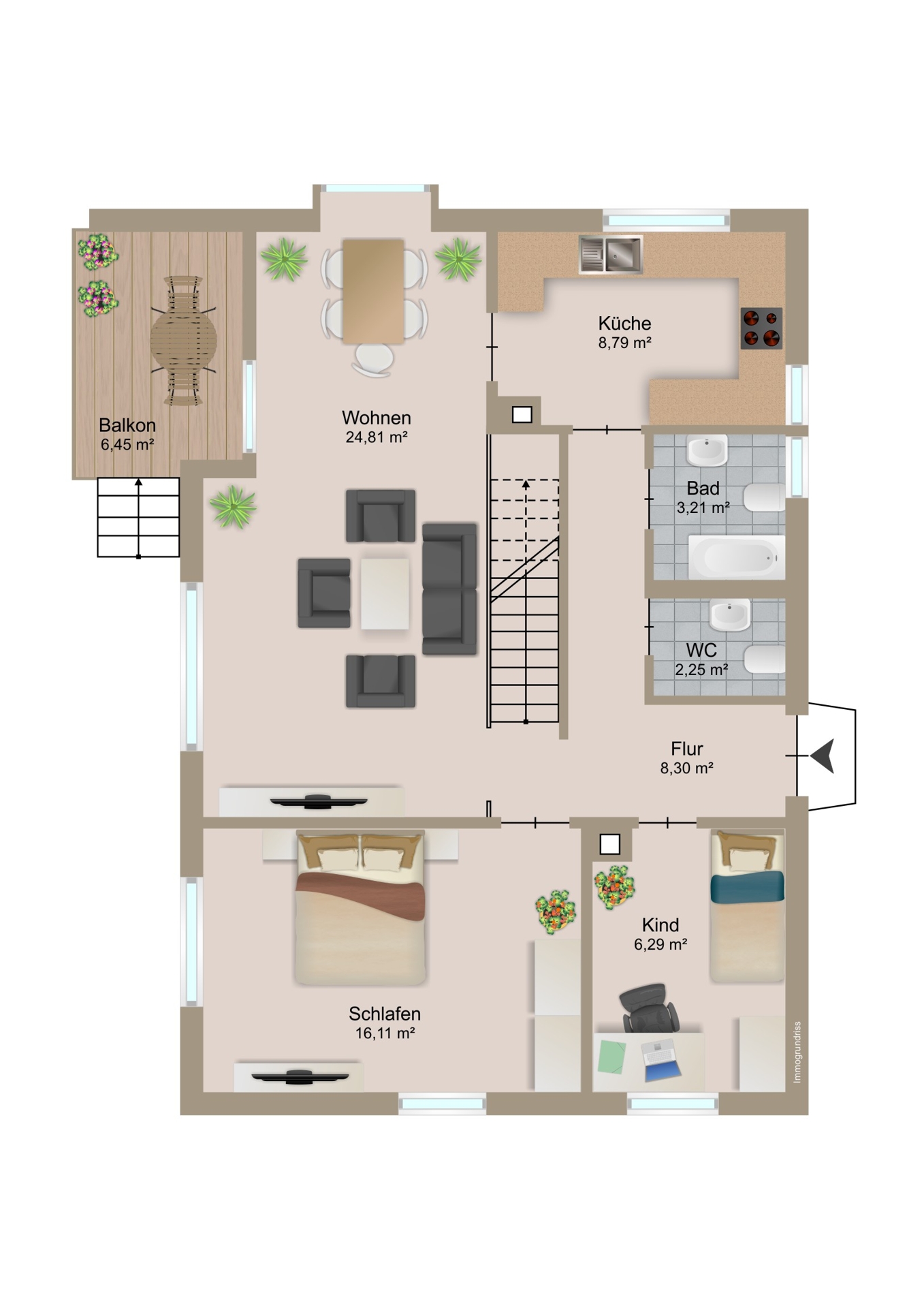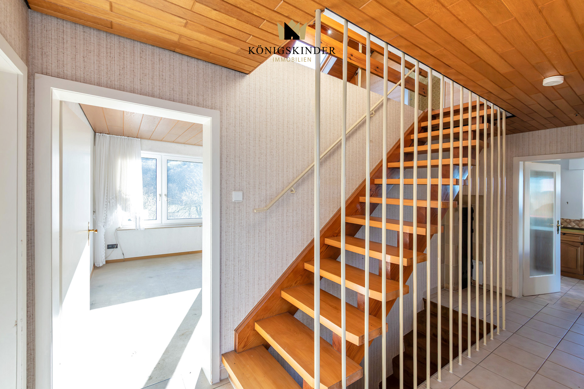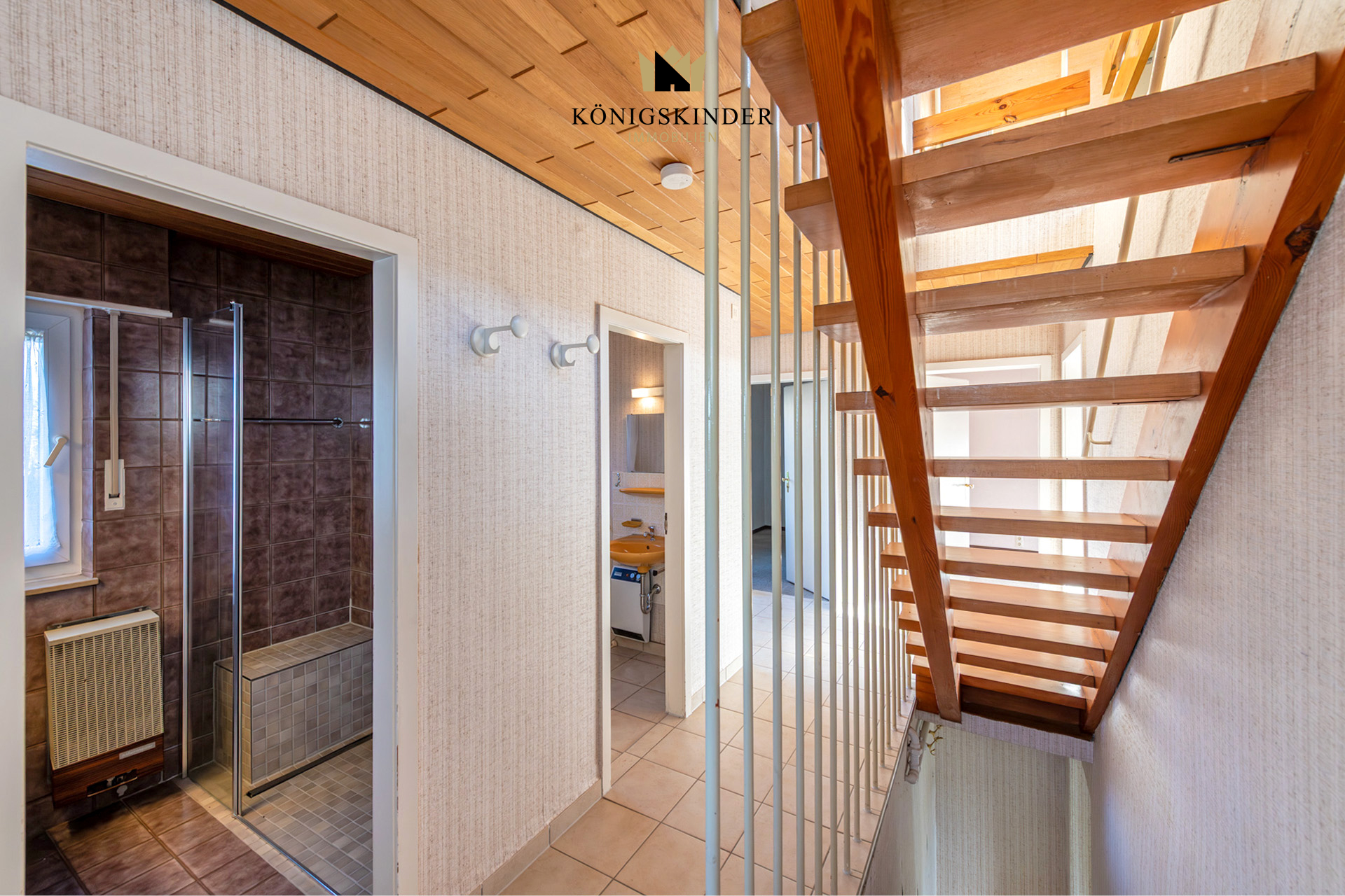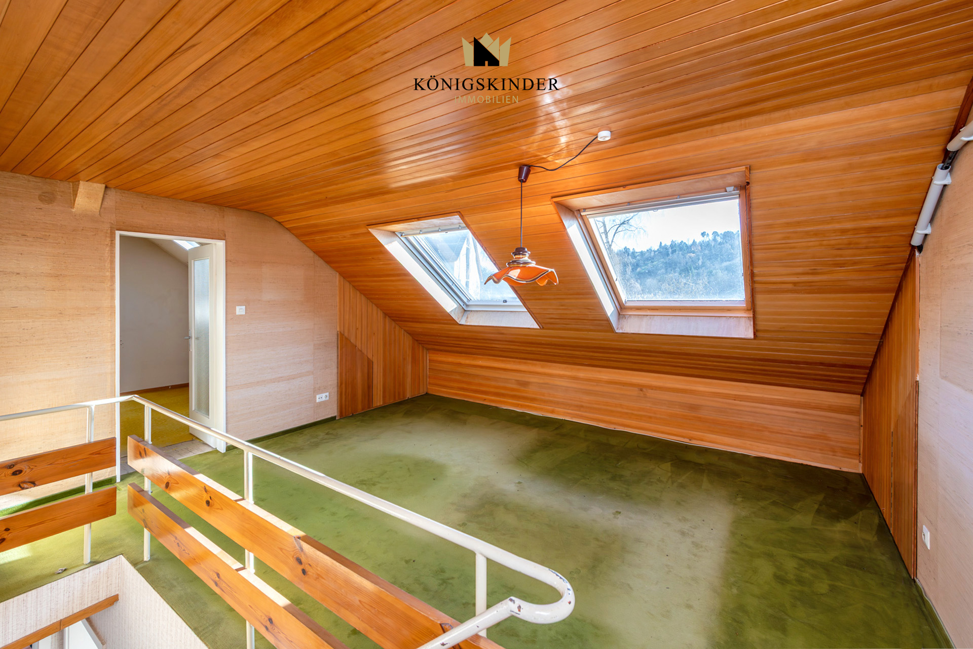 Das Haus verfügt über insgesamt fünf Individualzimmer, die Ihnen flexible Gestaltungsmöglichkeiten bieten. Über den Eingangsbereich gelangen Sie in den Flur über welchen Sie alle Räume im Erdgeschoss erreichen. Hier befinden sich zwei Individualräume, welche sich als Schlaf- oder Arbeitszimmer anbieten. Zusätzlich befindet sich im Erdgeschoss ein großes Wohn- und Esszimmer welches durch seine schöne Aussicht ins Grüne durch die große Fensterfront besticht. Über die Balkontür gelangen Sie vom Wohn- und Esszimmer auch auf den Balkon mit Zugang zu Vorgarten über eine Treppe. Angrenzend an das Esszimmer befindet sich die Küche, welche aktuell mit einer Einbauküche ausgestattet ist. Außerdem befinden sich im Erdgeschoss noch das separate WC sowie ein Badezimmer mit Wachtisch und bodentiefer Dusche. Über die Treppe im Flur gelangen Sie direkt in das Obergeschoss in dem sich die schöne Galerie mit typischem Dachgeschosscharakter befindet. Außerdem befinden sich im Dachgeschoss zwei weitere Individualräume welche sich ebenfalls als Schlaf- oder Arbeitszimmer anbieten. Aber auch ein Umbau eines der Zimmer zu einem Badezimmer wäre aufgrund entsprechend vorhandener Anschlüsse und Leitung gut machbar. Des Weiteren befindet sich hier auch der Zugang zu dem Abstellraum, welcher praktischen Stauraum bietet. Auch die Aussicht ist im Dachgeschoss erwähnenswert schön.