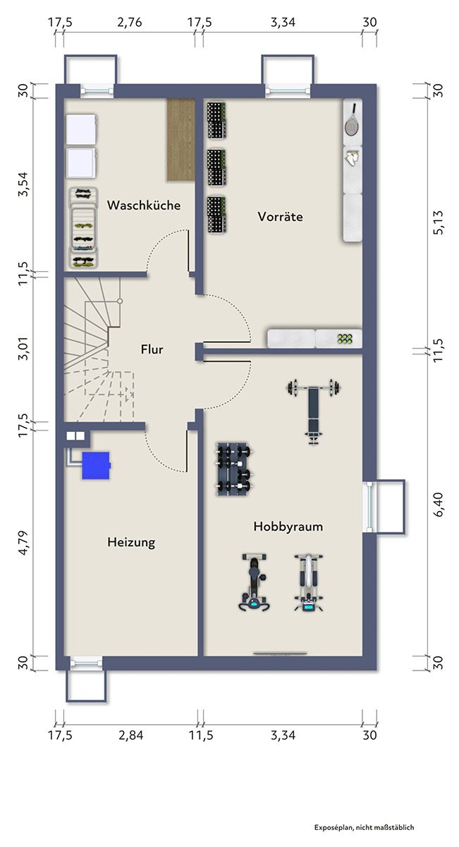 Ca. 65 m² Nutzfläche im Keller bieten genug Platz für Vorräte, Wäsche oder Hobbys.