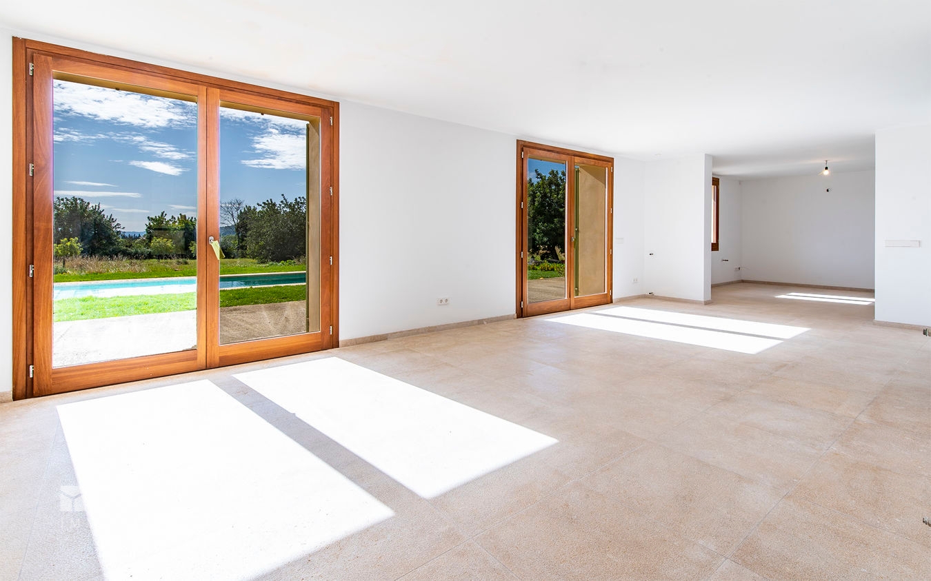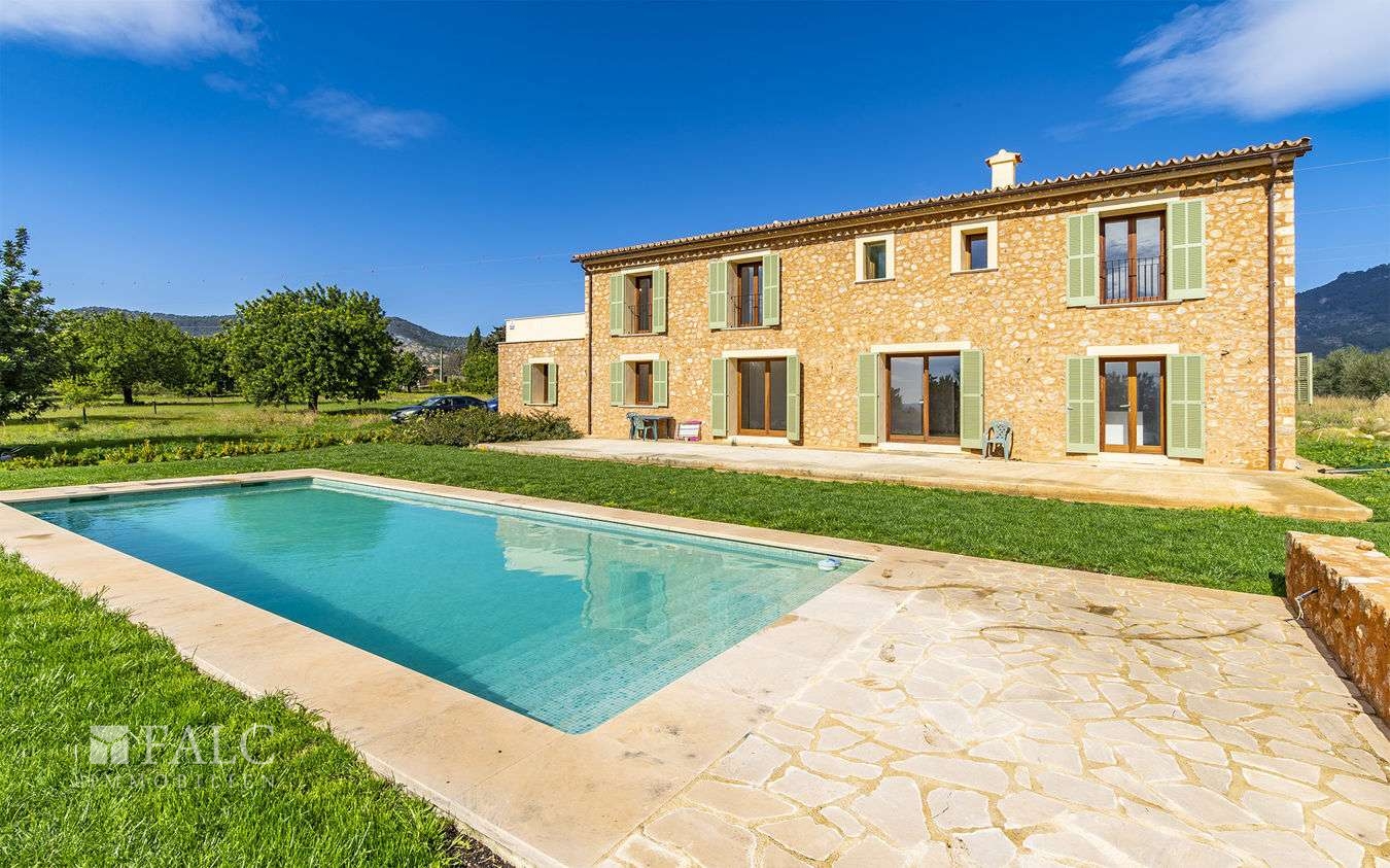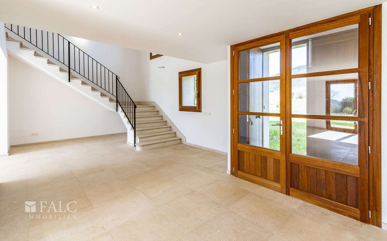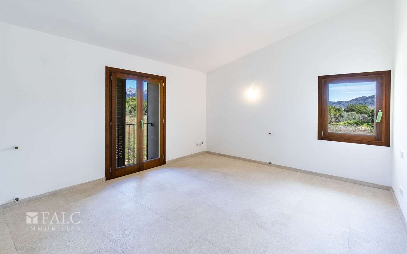 Diese wunderbare Finca in Alaró mit traumhaftem Bergblick und erfrischendem Salzwasserpool befindet sich auf einem herrlichen, sonnigen ca. 17.000 m2 grossen Grundstück mit Südostausrichtung, umgeben von viel Ruhe und Privatsphäre. Das attraktive Objekt, 2020 mit hochwertigen Materialien erbaut, verfügt über eine bebaute Fläche von ca. 413 m2 (davon ca. 150 m2 Wohnfläche), die sich wie folgt aufteilt: Das fantastische Erdgeschoss, ein sehr heller Bereich mit hohen Decken, verfügt über einen angenehmen Eingang mit einer Gästetoilette und einer breiten Treppe, die in den ersten Stock führt, sowie über ein schönes offenes Wohnzimmer mit eigenem Essbereich, das mit der spektakulären modernen Küche verbunden ist. Auf dieser Etage befindet sich auch ein Schlafzimmer mit eigenem Bad. Der erste Stock bietet ein gemütliches zweites Wohnzimmer, das auf eine gemütliche Terrasse mit Blick auf die Berge führt. Auf dieser Etage befinden sich 3 Schlafzimmer, 2 davon mit eigenem Bad und ein weiteres Gäste-WC. Beide Etagen sind mit einem noch zu installierenden Kamin ausgestattet. Der Aussenbereich besticht durch seine Privatsphäre und den freien Blick. Es gibt einen beeindruckenden Salzwasser-Swimmingpool von ca. 45 m2, um die warmen Sommertage zu geniessen und einen wunderschönen mediterranen Garten. Weitere Merkmale: Brunnen für den Garten und den Pool, Anschluss an die öffentliche Wasserversorgung, Vorinstallation für Heizung, Klimaanlage und Kamine, mehrere Aussenparkplätze und Überwachungskamera. Alaró befindet sich in einem ruhigen Tal im Süden der Serra de Tramuntana auf Mallorca.