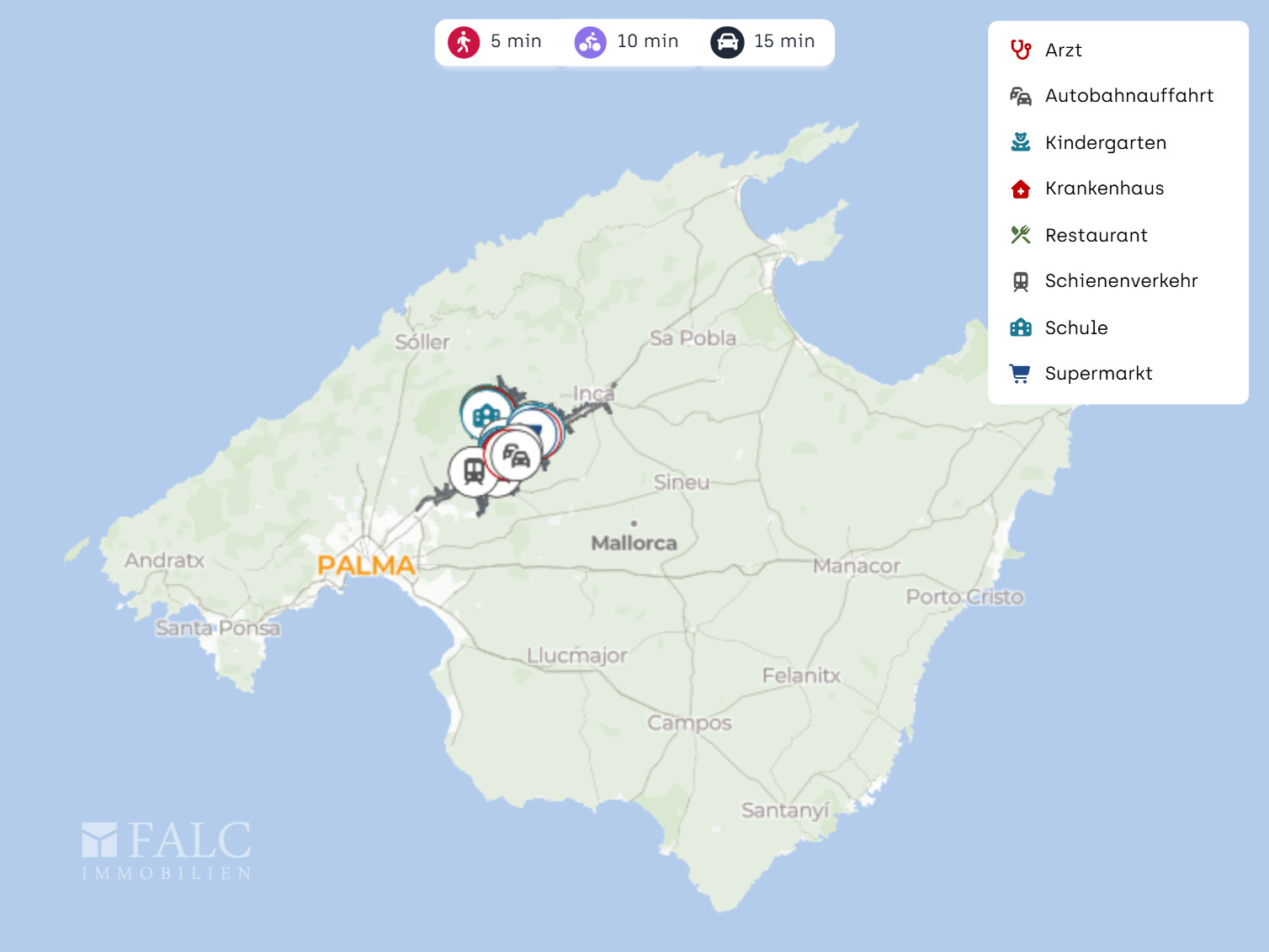 FALC – Ihre internationale Immobilienagentur mit dem Fokus auf Kundenzufriedenheit. Zahlreiche Auszeichnungen belegen unseren Anspruch. Unsere kompetenten lokalen Makler kennen den Markt auf Mallorca bis ins Detail und freuen sich darauf, Sie persönlich kennenzulernen. Überzeugen Sie sich selbst – wir sind Ihr verlässlicher Partner, wenn es um den Kauf oder Verkauf Ihrer Traumimmobilie auf Mallorca geht. Gerne lassen wir Sie von unserem weitreichenden Netzwerk professioneller Dienstleister profitieren – sei es in steuerlichen oder juristischen Fragen, bei administrativer Unterstützung oder der Betreuung Ihrer Ferienimmobilie. Bitte beachten Sie, dass sämtliche Angaben teilweise oder vollständig auf Informationen des Eigentümers beruhen. Für deren Richtigkeit können wir keine Haftung übernehmen. Die Inhalte und Bilder dieses Exposés können mit Unterstützung künstlicher Intelligenz (KI) erstellt worden sein.