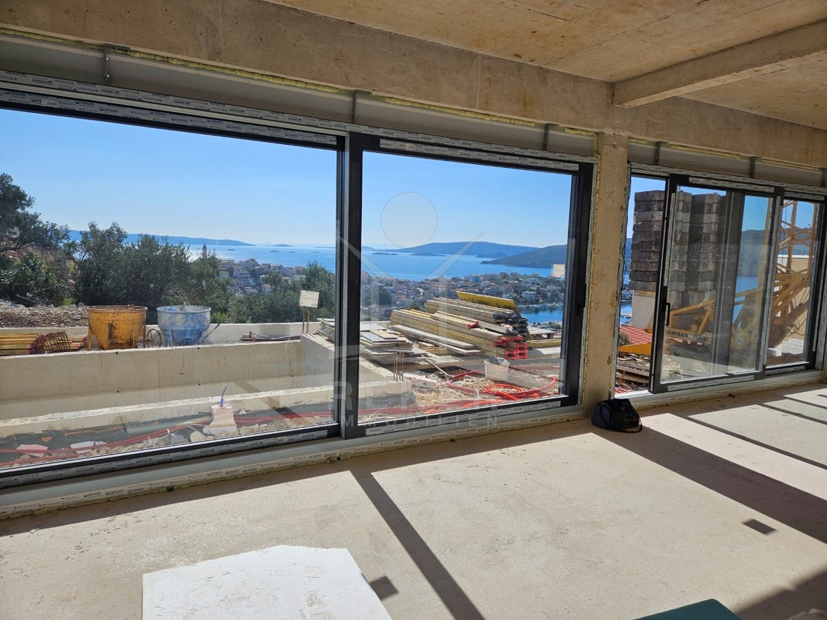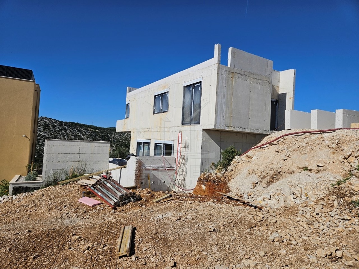 Diese moderne Neubau-Villa befindet sich in einer gefragten Wohnlage in der Region Trogir, nur wenige Minuten vom Stadtzentrum und vom Strand entfernt. Die Umgebung bietet Ruhe und Privatsphäre. Gleichzeitig erreichen Sie alle wichtigen Punkte schnell. Das Ortszentrum ist ca. 1,5 km entfernt, der Flughafen Split rund 15 km. Die freistehende Villa ist nach Süden ausgerichtet, ergänzt durch Ost- und Westausrichtung, und eröffnet einen Blick auf das Meer. Zwei Außenstellplätze stehen direkt am Haus zur Verfügung.