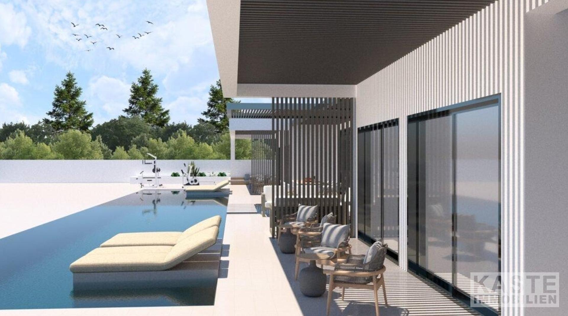 Technische Aspekte: Die Villa ist so konzipiert, dass sie das ganze Jahr über bewohnt werden kann. Die Wände werden mit einer massiven Isolierung versehen, um für thermischen Komfort zu sorgen. Darüber hinaus sorgen eingebaute Klimaanlagen für ein System, das das Haus kühlt (und bei Bedarf heizt). Beide Installationen sind auf Energieeffizienz und Komfort ausgerichtet. Auch die Wände und das Dach werden mit einer Technologie zur Feuchtigkeitskontrolle ausgestattet. Alle Fenster werden doppelt verglast und die Außentüren sorgen für zusätzliche Wärme- und Schalldämmung, Sicherheit und Belüftung.