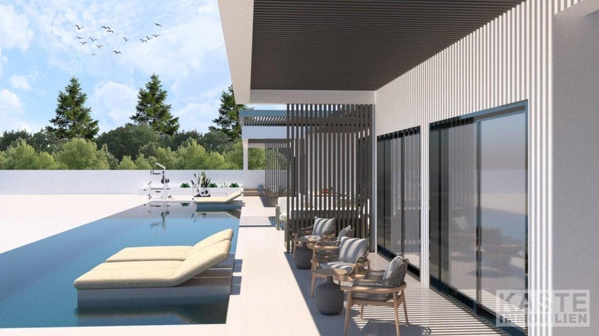 Technische Aspekte: Die Villa ist so konzipiert, dass sie das ganze Jahr über bewohnt werden kann. Die Wände werden mit einer massiven Isolierung versehen, um für thermischen Komfort zu sorgen. Darüber hinaus sorgen eingebaute Klimaanlagen für ein System, das das Haus kühlt (und bei Bedarf heizt). Beide Installationen sind auf Energieeffizienz und Komfort ausgerichtet. Auch die Wände und das Dach werden mit einer Technologie zur Feuchtigkeitskontrolle ausgestattet. Alle Fenster werden doppelt verglast und die Außentüren sorgen für zusätzliche Wärme- und Schalldämmung, Sicherheit und Belüftung.