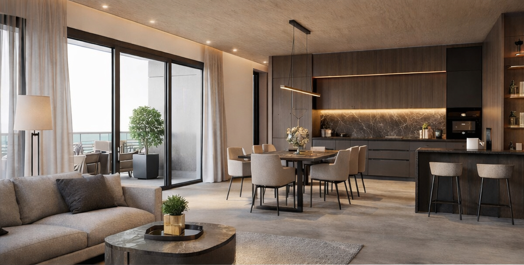 Das Penthouse profitiert von bodentiefen Fensterfronten, einer Deckenheizung mit individueller Steuerung die im Sommer auch zur Kühlung genutzt werden kann, hochwertigen Bodenbelägen in Wohnräumen und modernen Fliesen in den Bädern. Die Sanitärkeramik und Armaturen stammen von renommierten Herstellern. Eine offene Küchenlösung oder eine Designer-Küche kann nach Käuferwunsch realisiert werden. Optional lassen sich Smart-Home-Komponenten für Beleuchtung, Heizung und Sicherheit integrieren. Zudem sind ausreichend Steckdosen, TV-/Daten-Verkabelung sowie Anschlüsse vorgesehen.