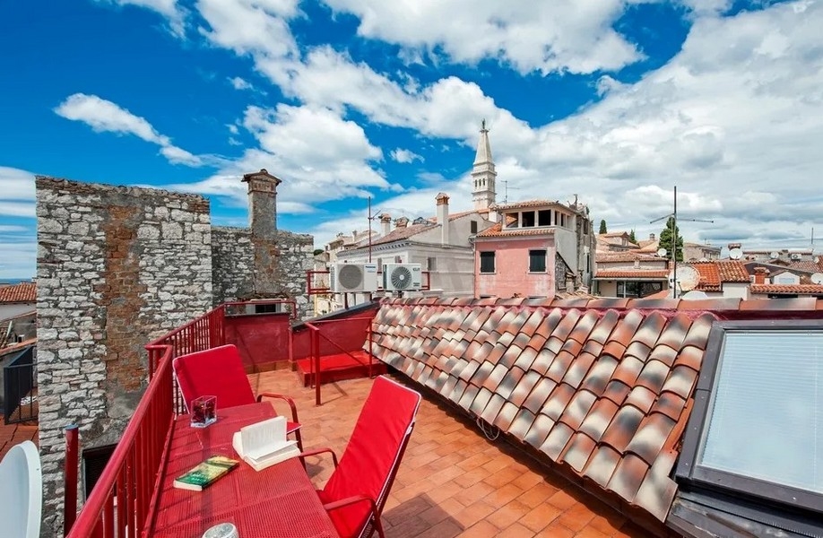 Ein besonderes Merkmal ist die weitläufige Dachterrasse mit offenem Blick auf das Meer und die charakteristischen Dächer der Altstadt – ein perfekter Ort für entspannte Momente oder den Morgenkaffee mit Blick auf die Adria.
