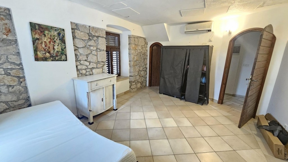 Im Erdgeschoss befinden sich ein Zimmer, ein Bad, ein Aufenthaltsbereich sowie eine traditionelle Taverne bzw. ein Weinkeller.