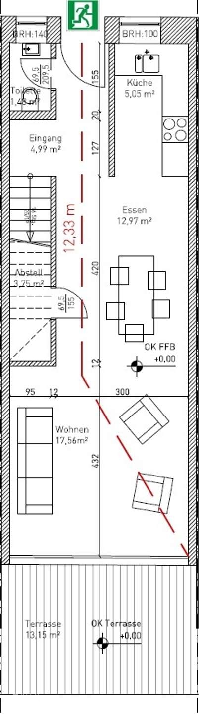 In das Haus wird zeitnah noch eine voll ausgestattete Küchenzeile mit Herd, Ofen, Kochfeld, Kühlschrank und Dunstabzug eingebaut.