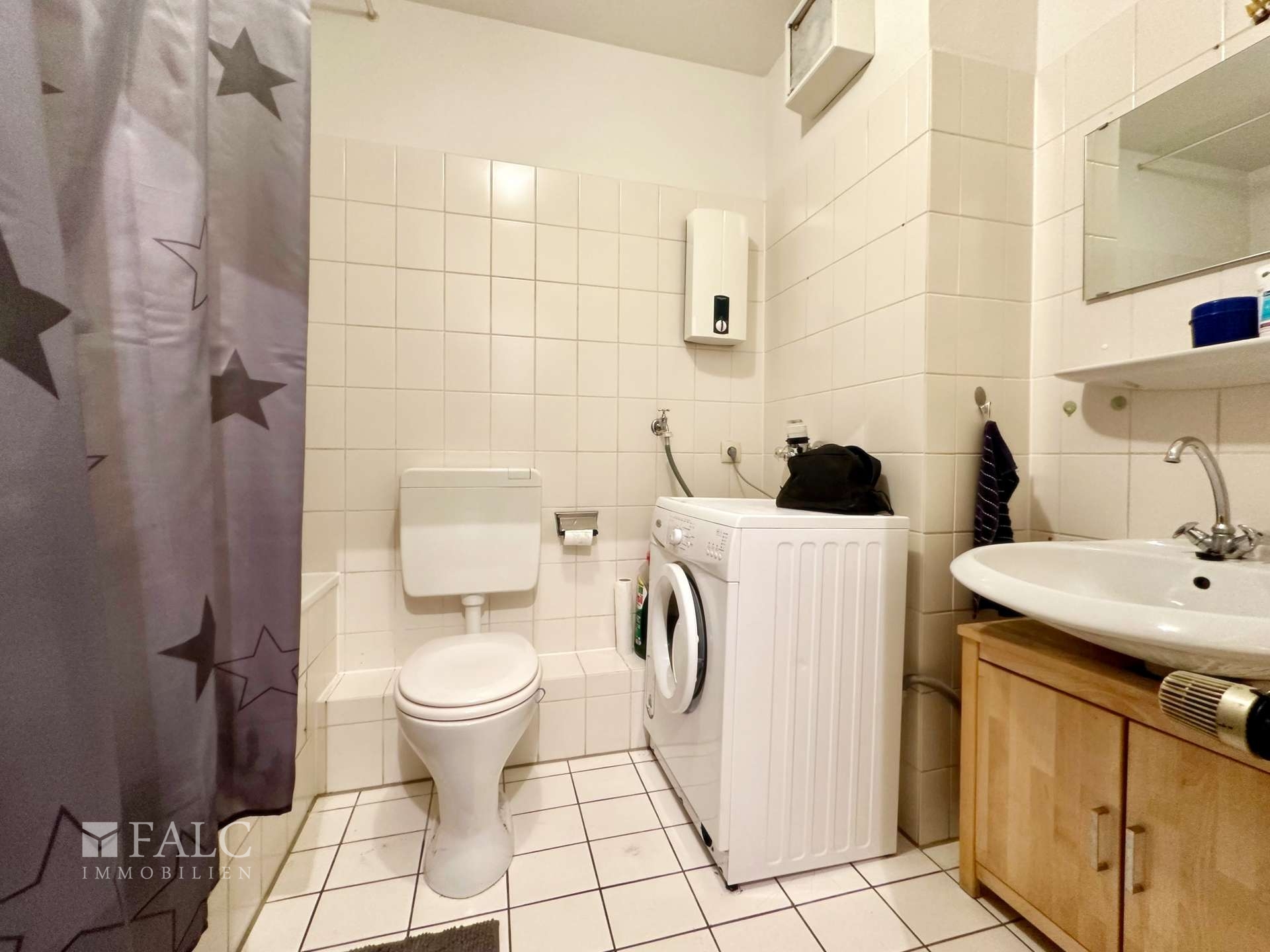 Das Badezimmer ist mit einer Badewanne ausgestattet, auch eine Waschmaschine findet hier ihren Platz, praktisch für den Alltag. Zusätzlich sorgt ein großzügiger Abstellraum, der sich auch als begehbarer Schrank nutzen lässt, für wertvolle Staufläche. Zur Wohnung gehört noch ein eigener Kellerraum.